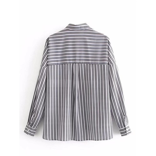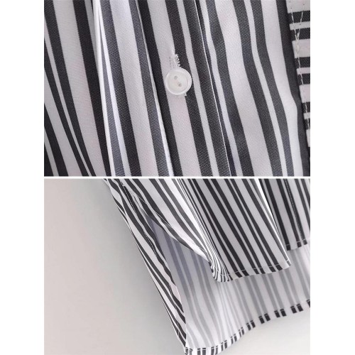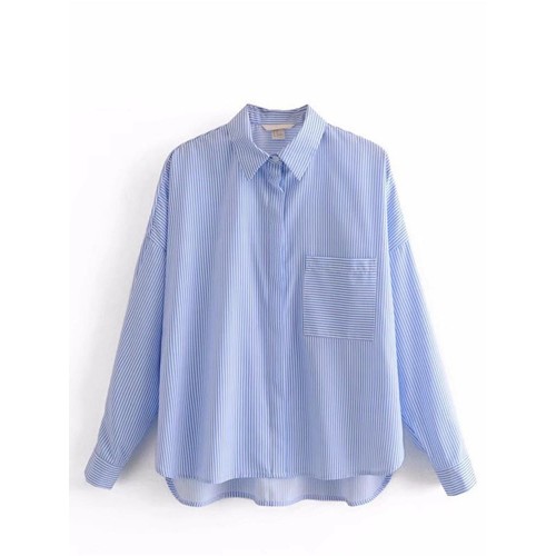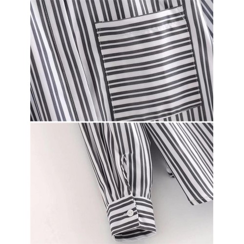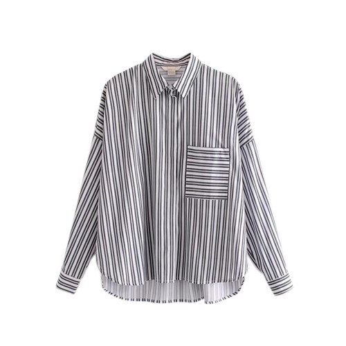 Casual Women Striped Long Sleeve Irregular Hem Pocket Blouse