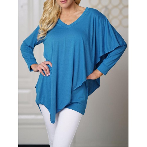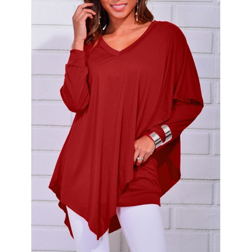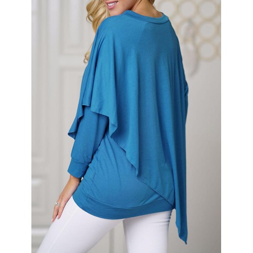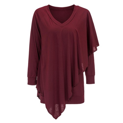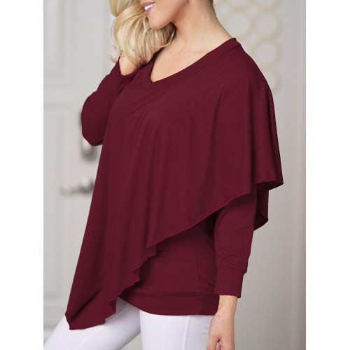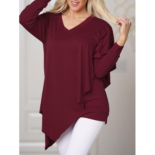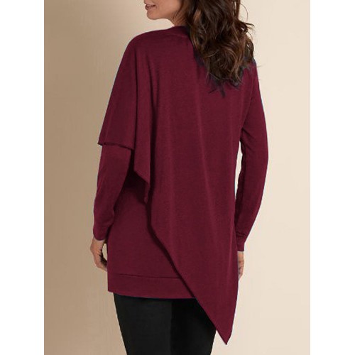 Women Solid Color Long Sleeve Irregular Hem Blouse