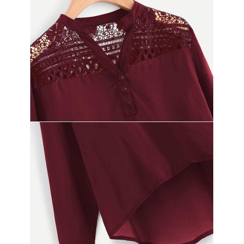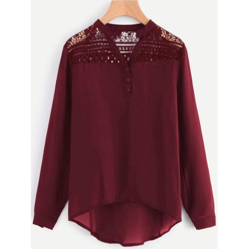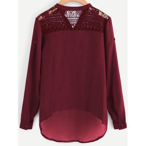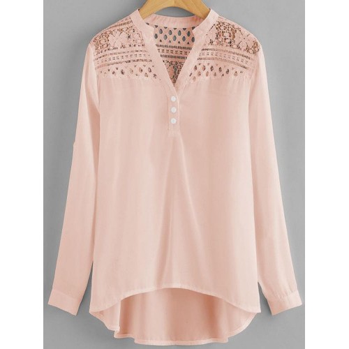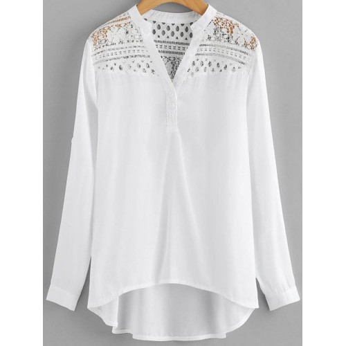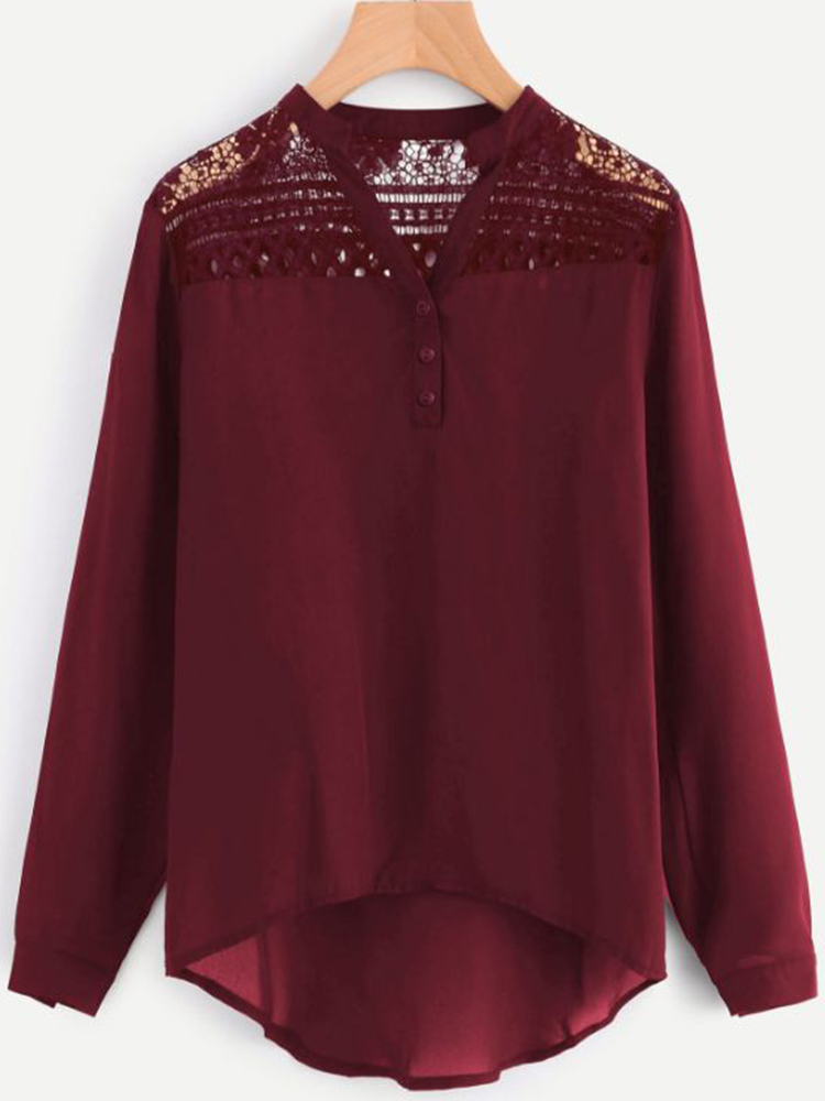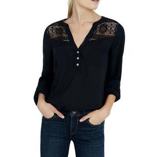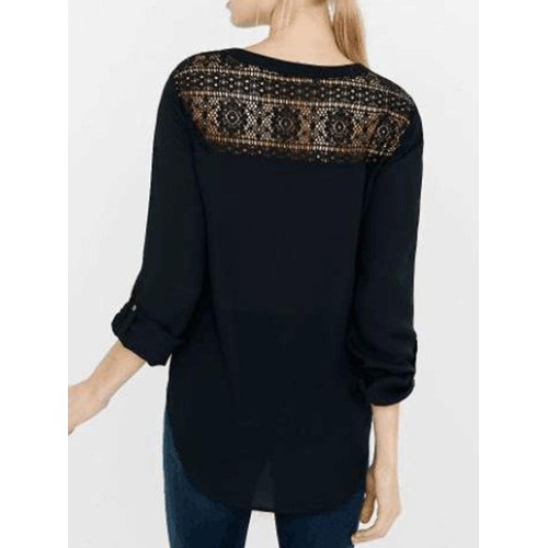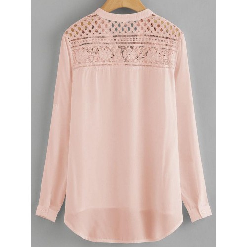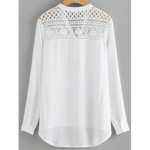 Women Casual Patchwork Hollow Chiffon Blouse