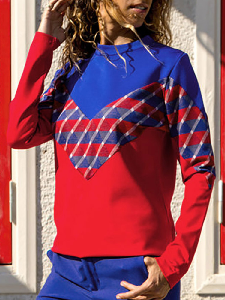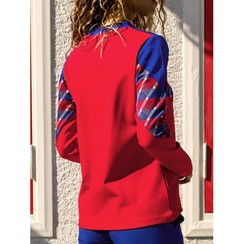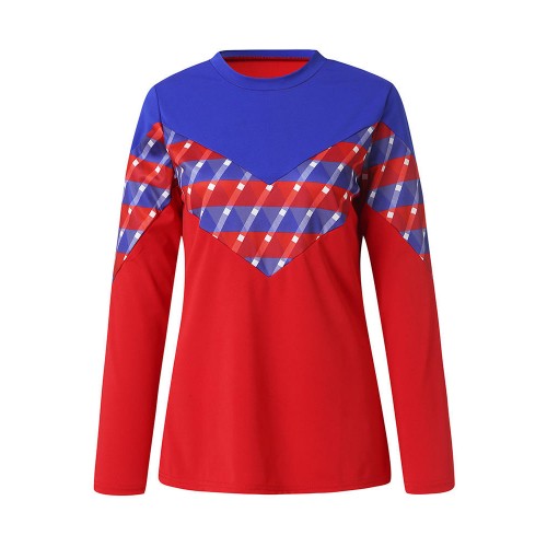 Women Casual O-neck Patchwork Long Sleeve T-shirts