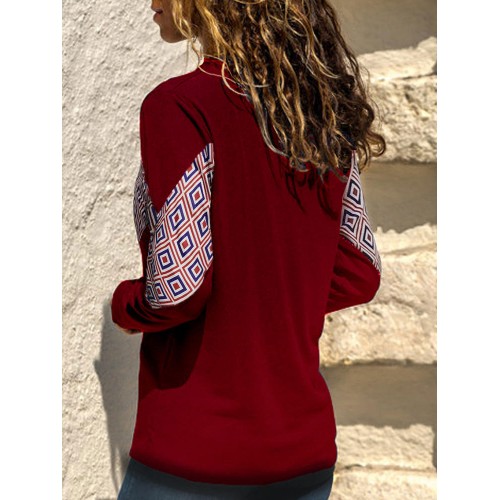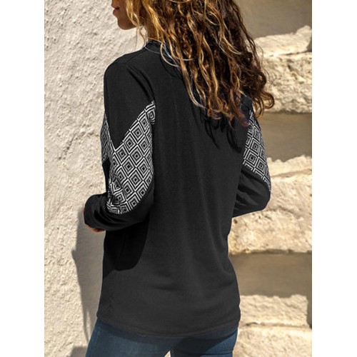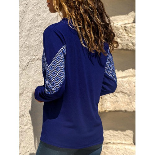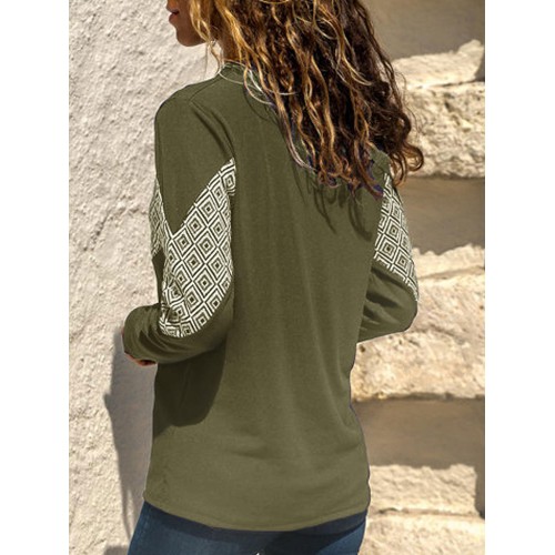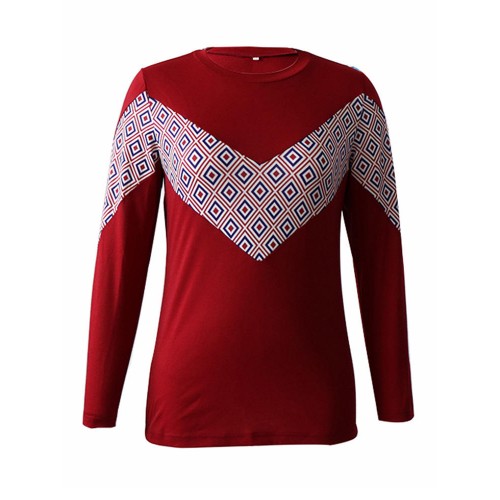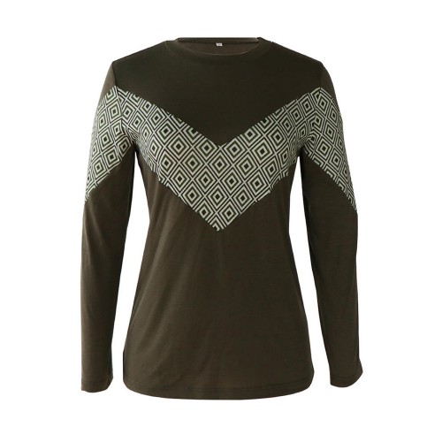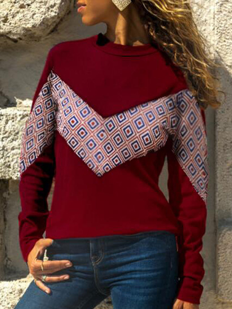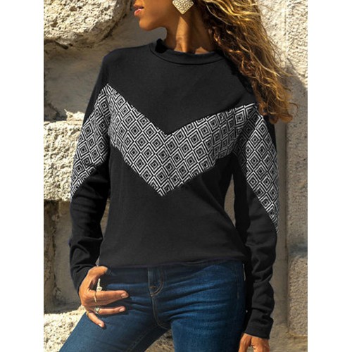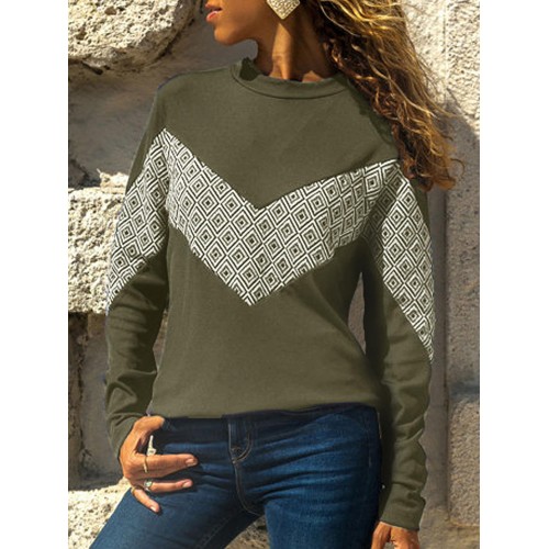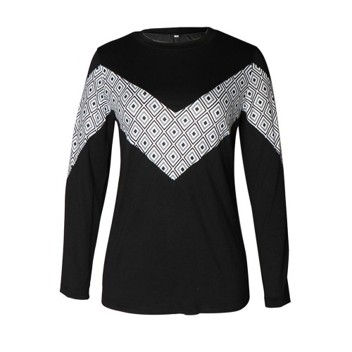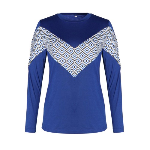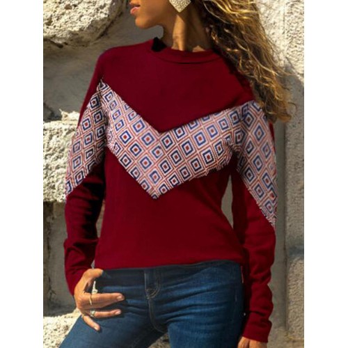 Women Casual Patchwork O-neck Long Sleeve T-shirts