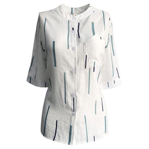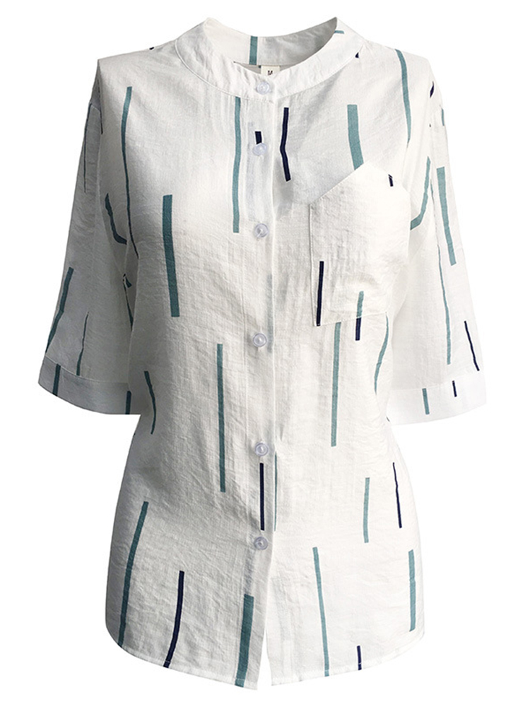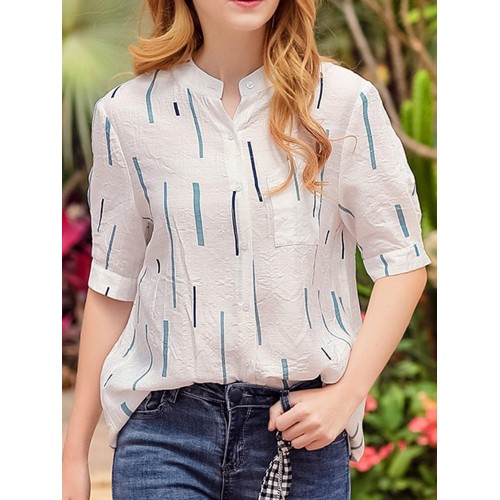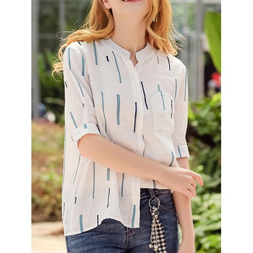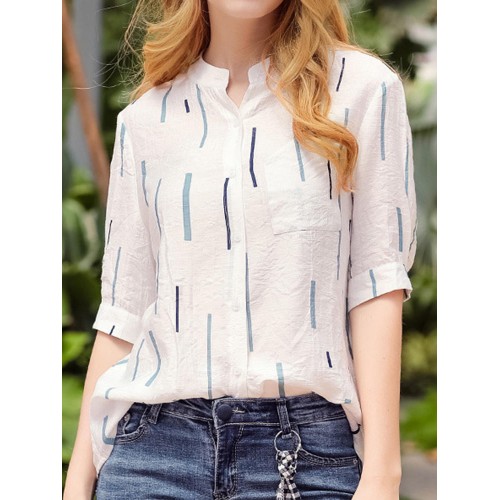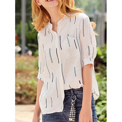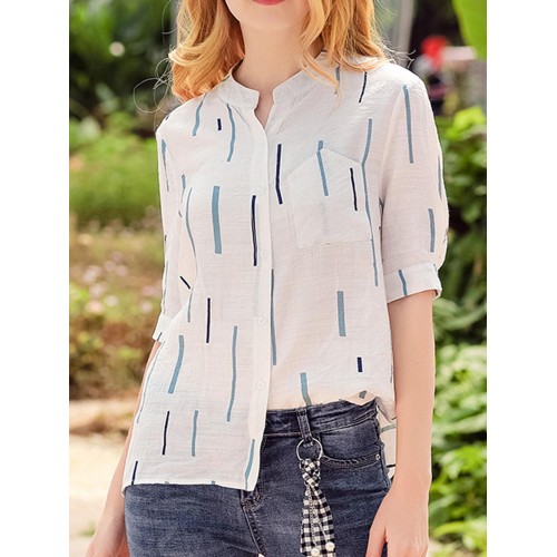 Casual Women Printed Loose Stand Collar Shirts
