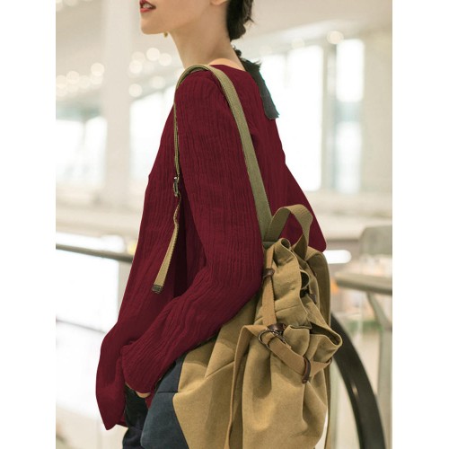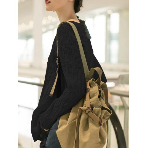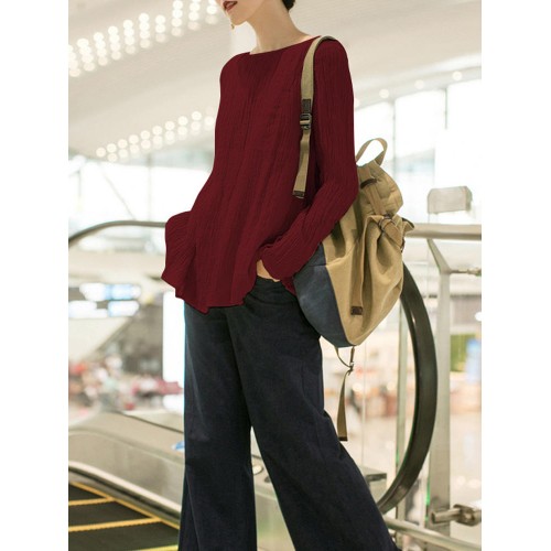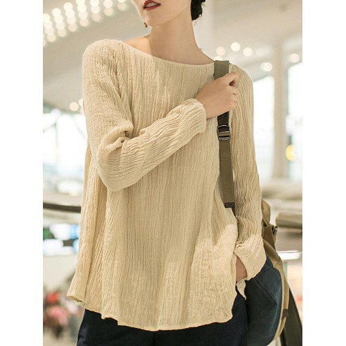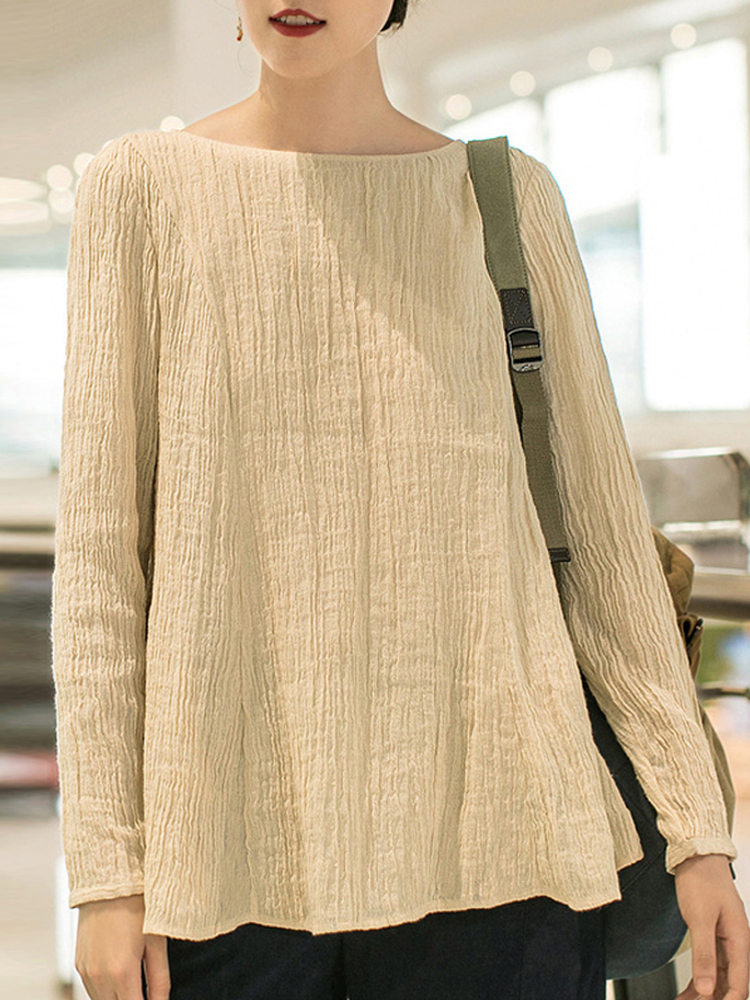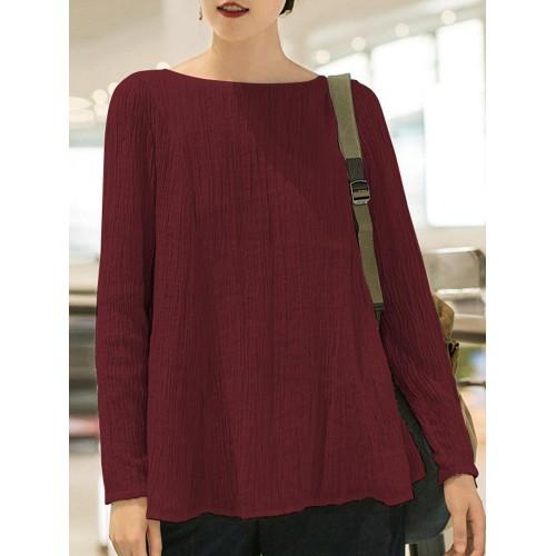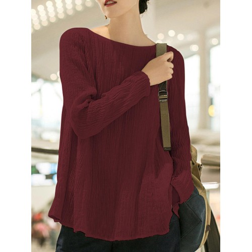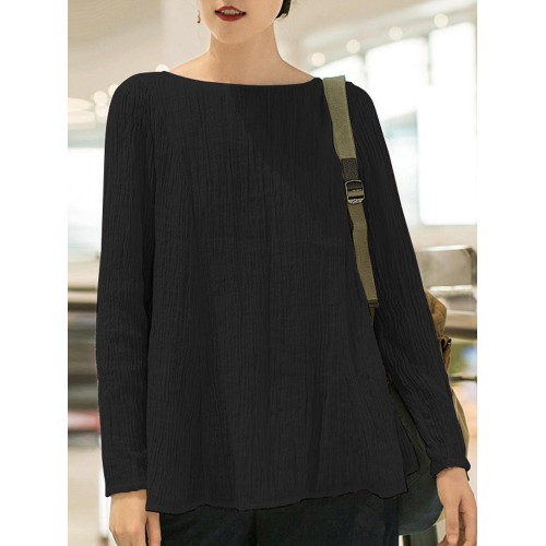 Women Casual Crew Neck Long Sleeve Solid Blouse