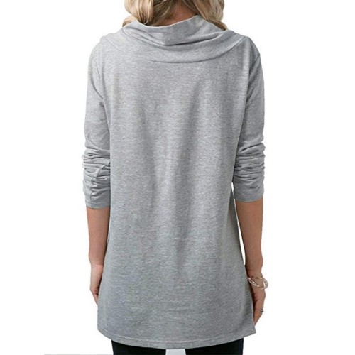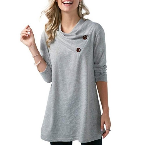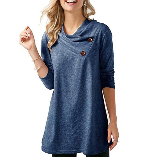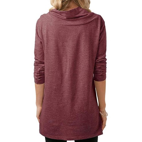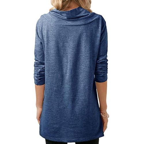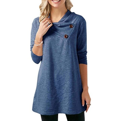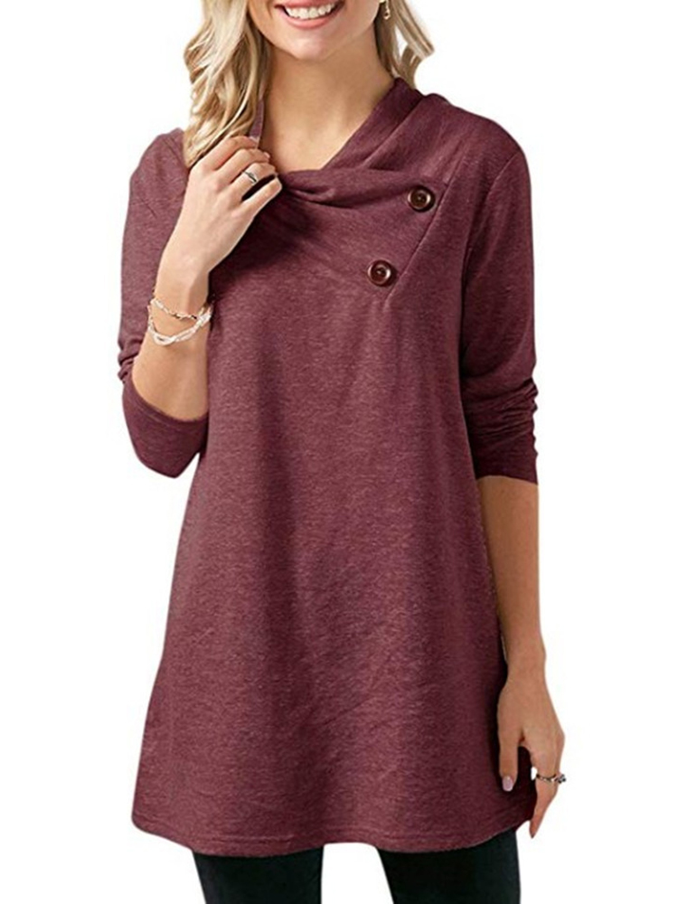 Women Pure Color Buttons Turtleneck Long Sleeve Blouse