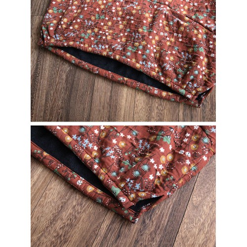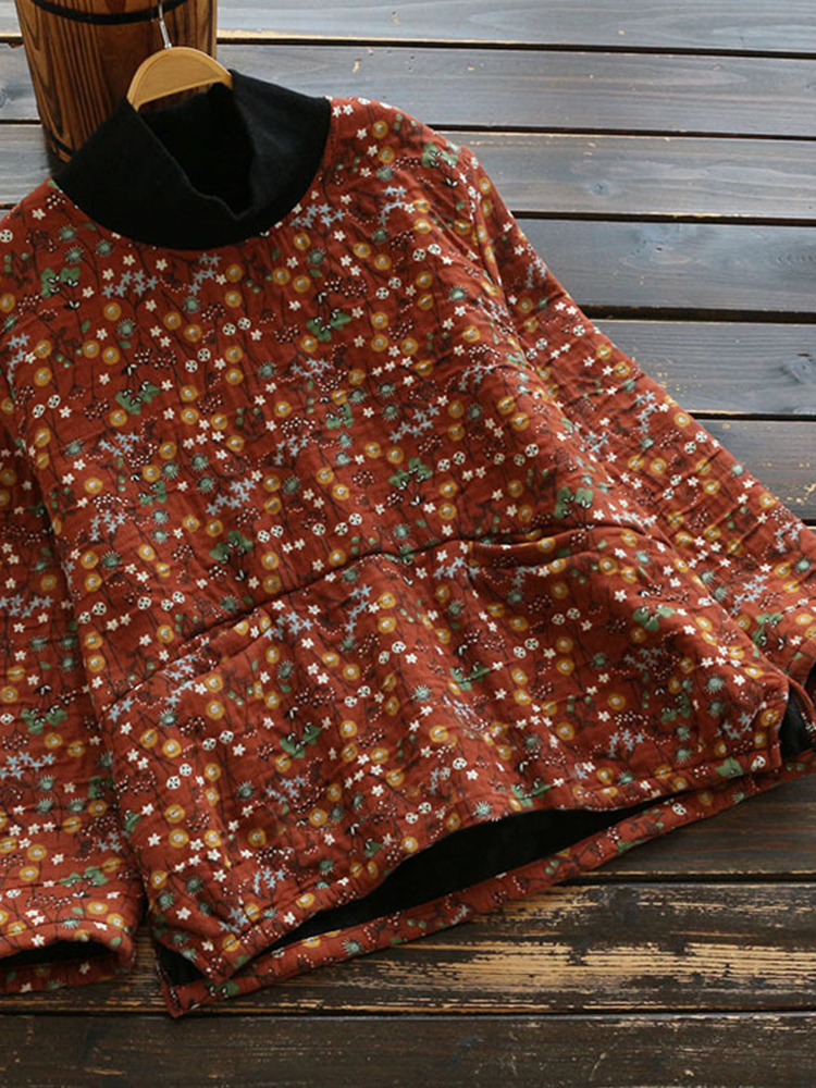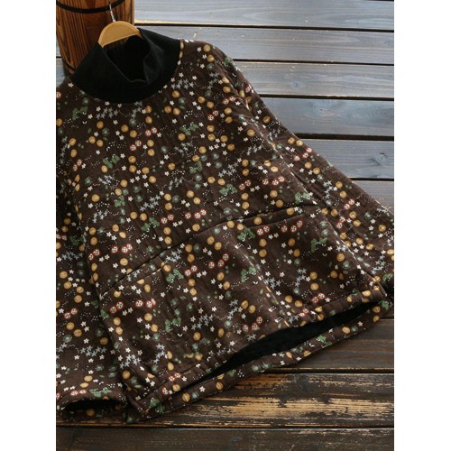 Women Vintage Floral Print Thicken Long Sleeve Blouse