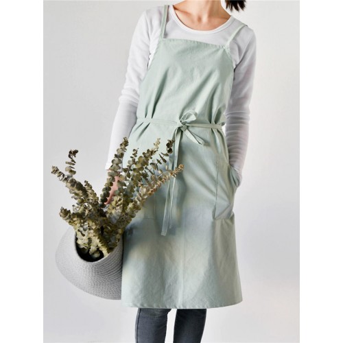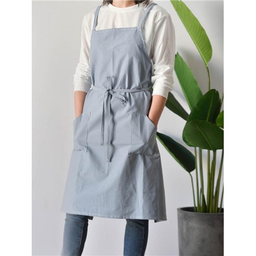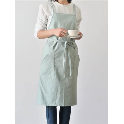 Women Casual Japanese Style Cotton Aprons Dress with Pocket