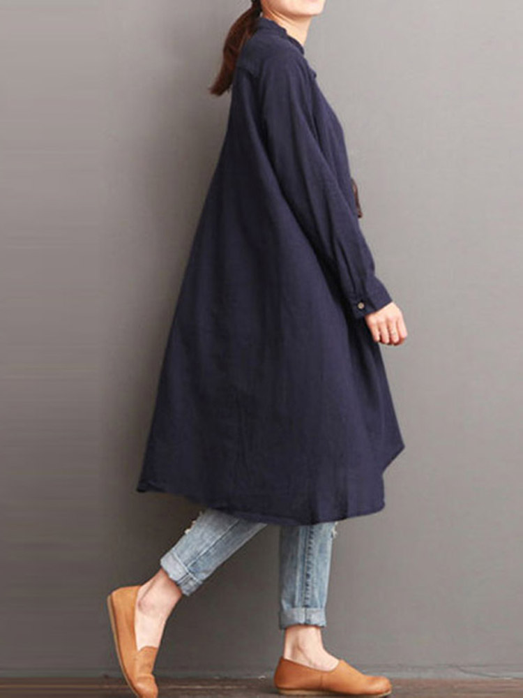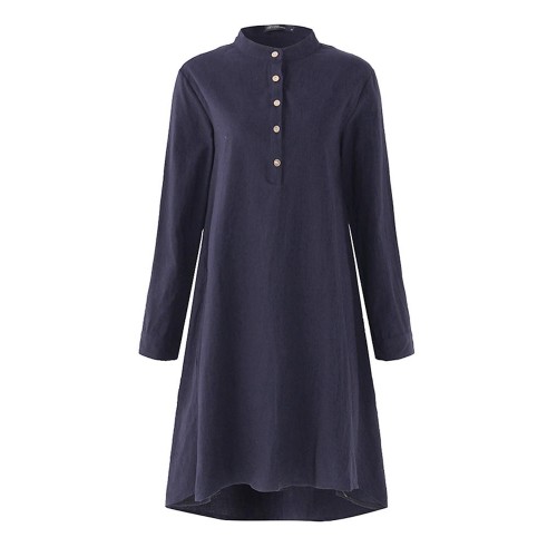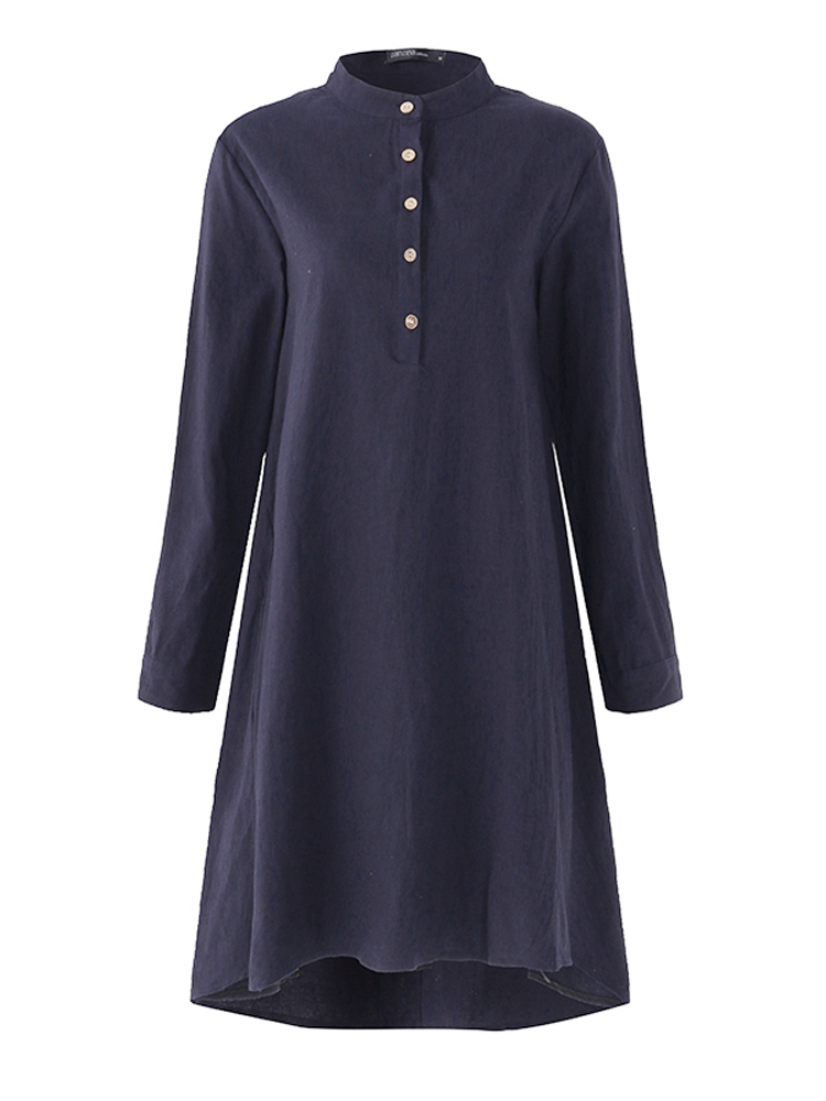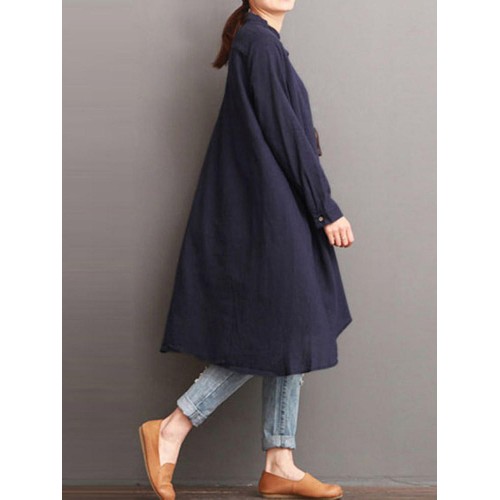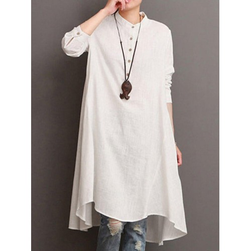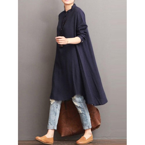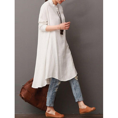 Women Button Down Baggy Blouse Casual Loose Asymmetric Shirt Dress