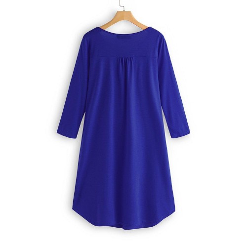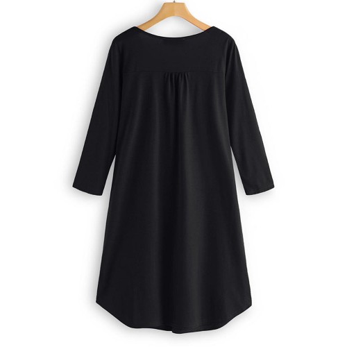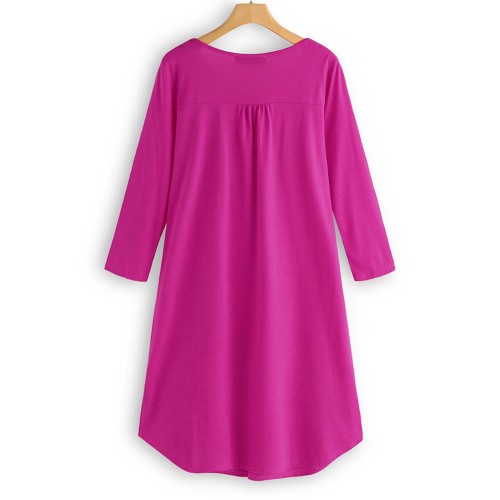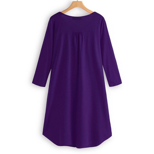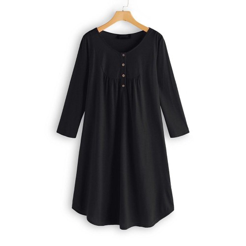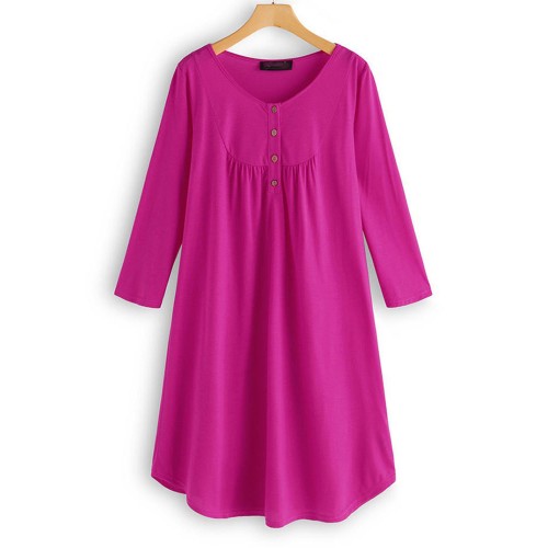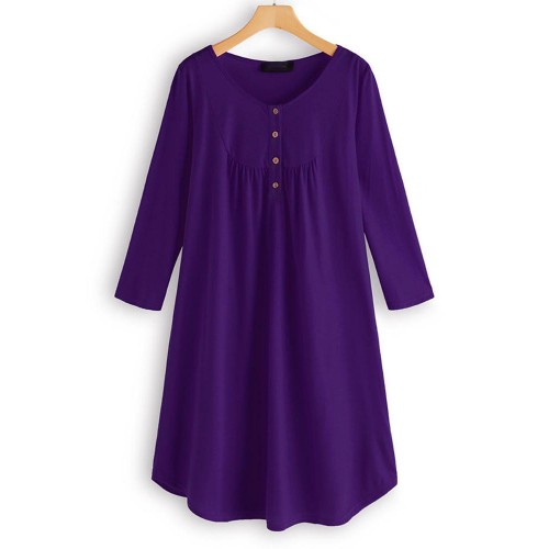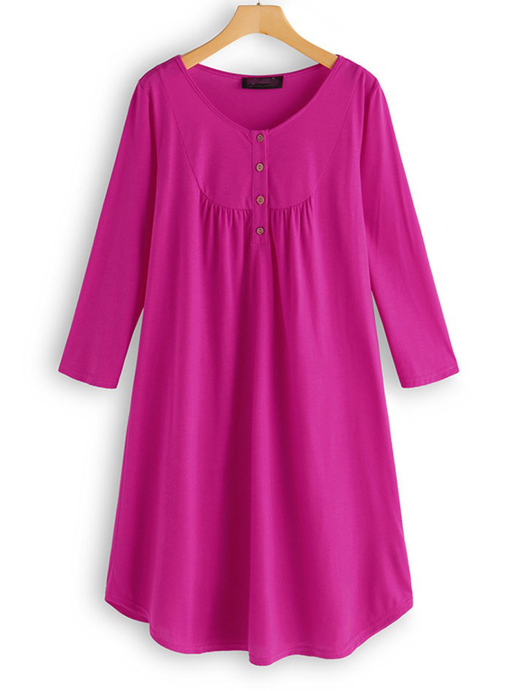 Women Long Sleeve Button Pleated Solid Color Dress
