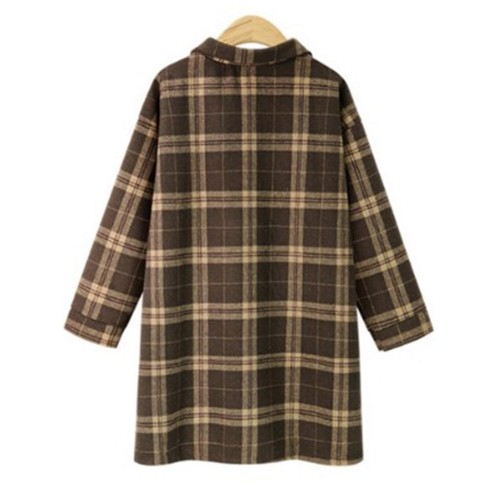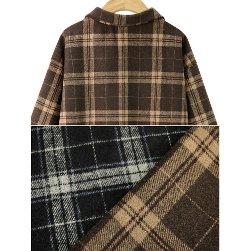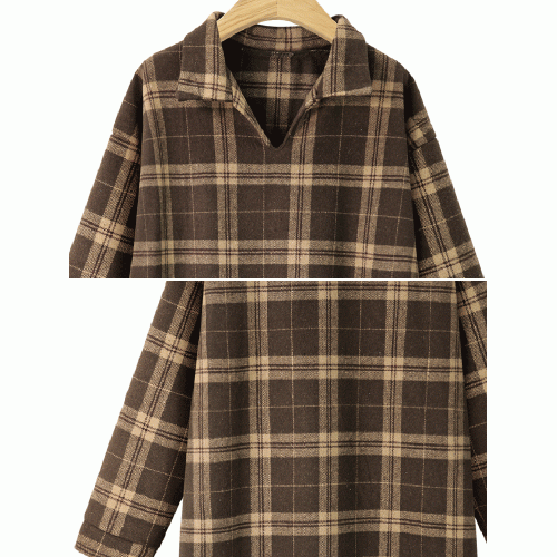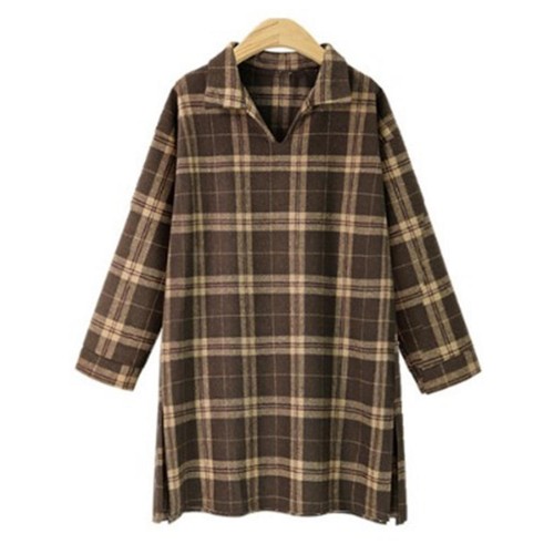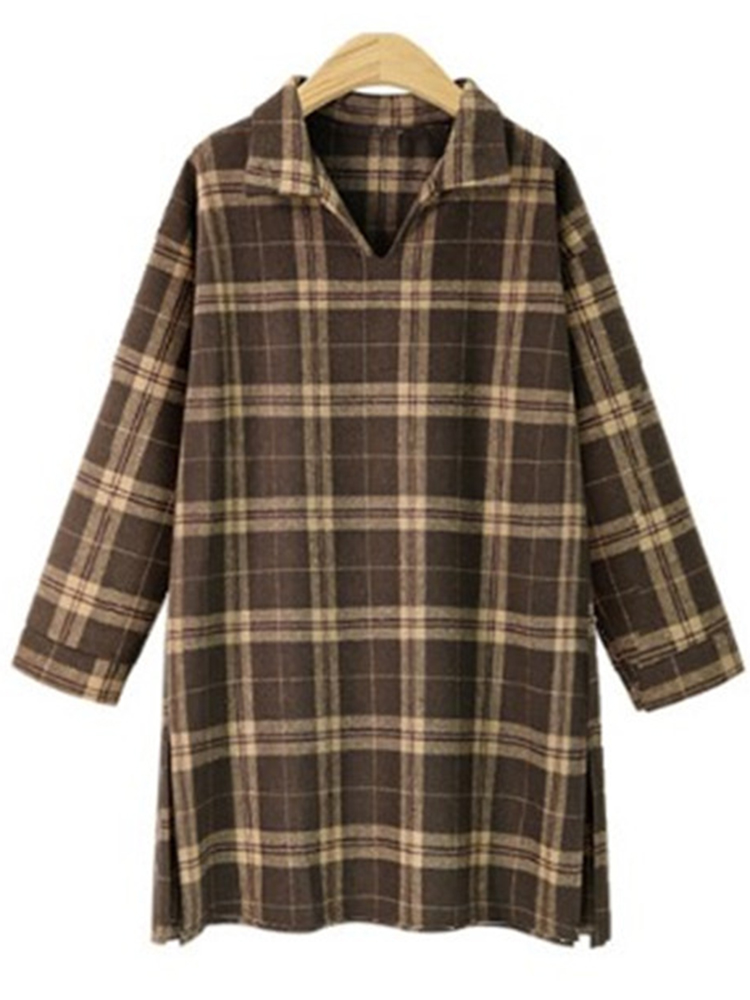 Women Plaid Lapel Long Sleeve Split Hem Dress