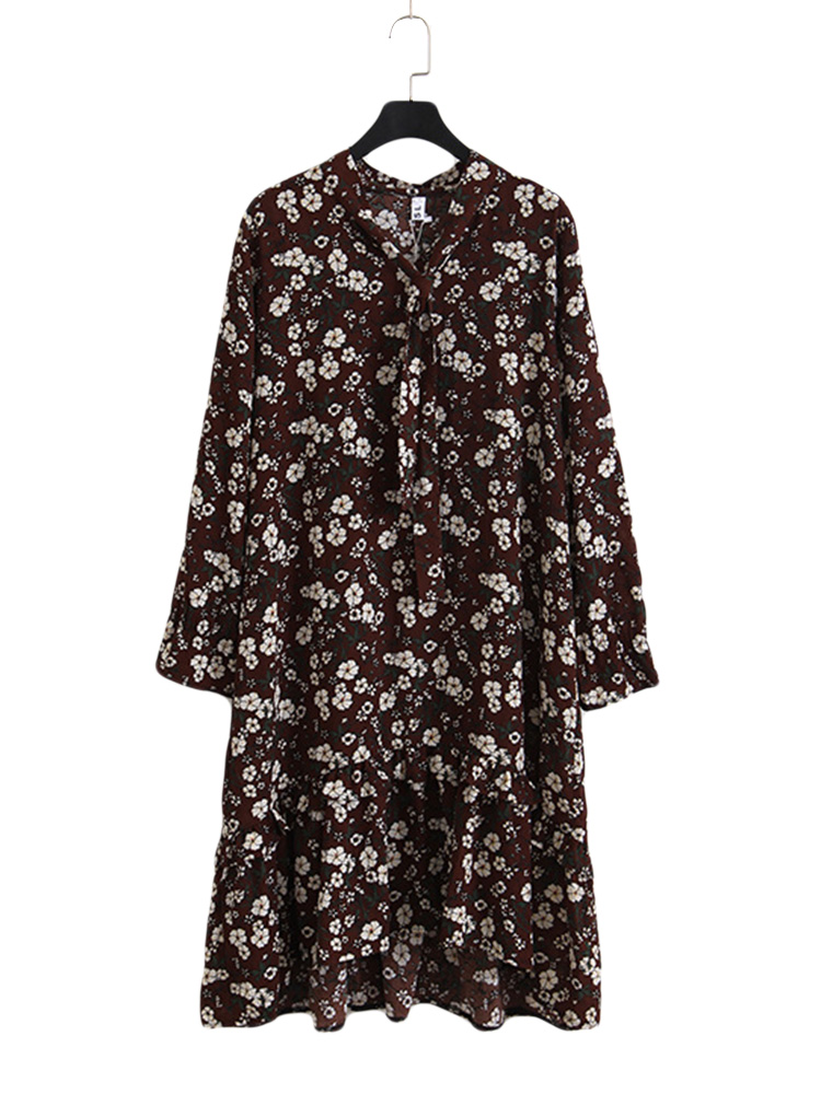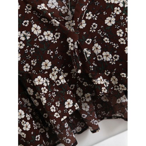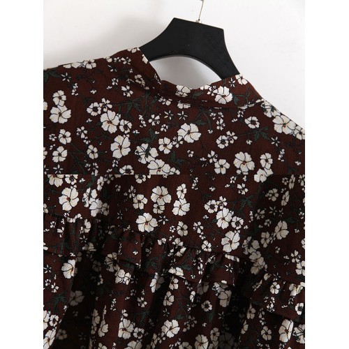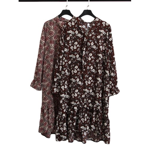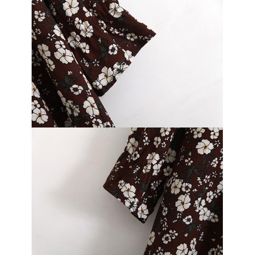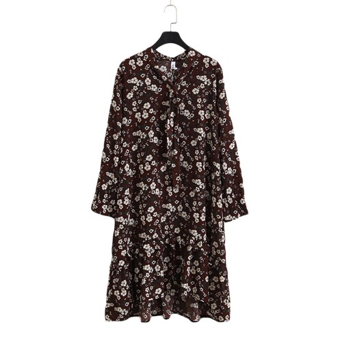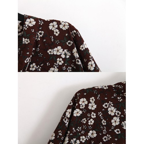 Women Floral Printed Chiffon Long Sleeve Dress