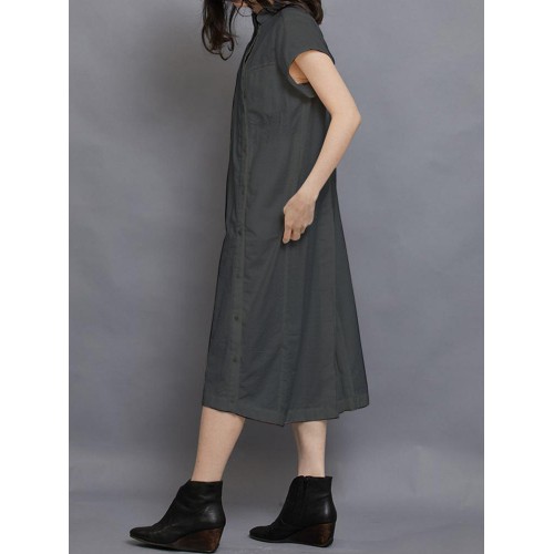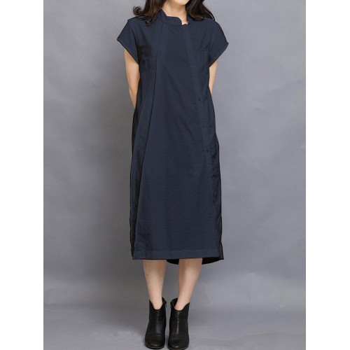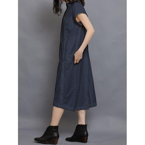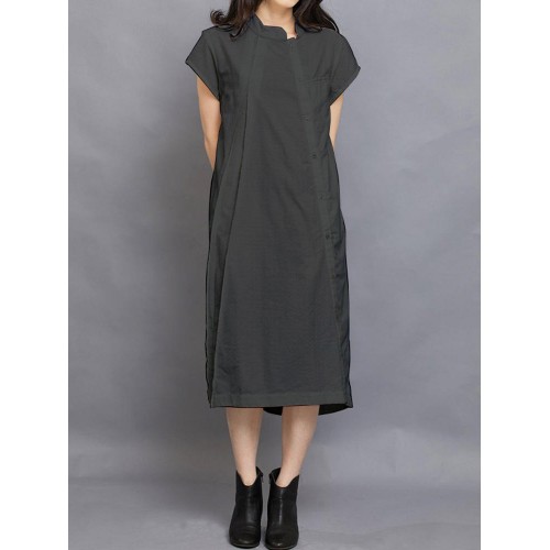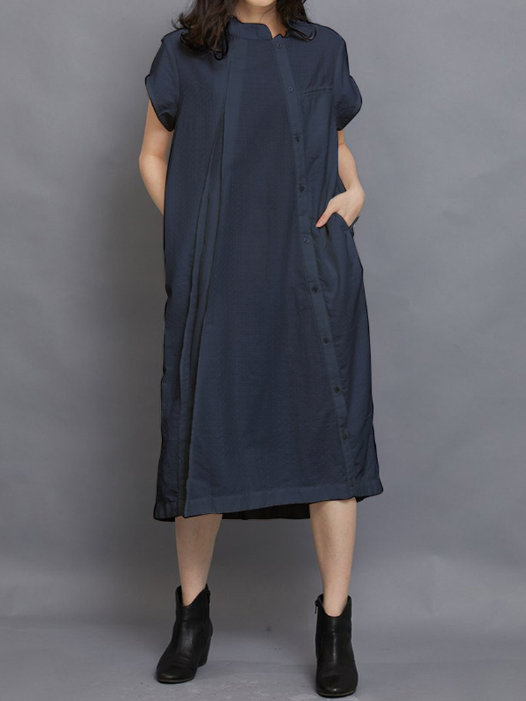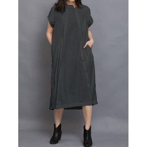 Women Short Sleeve Side Button Solid Casual Dress