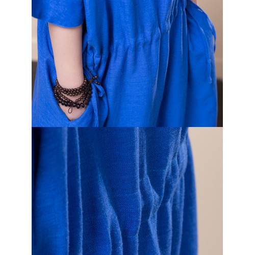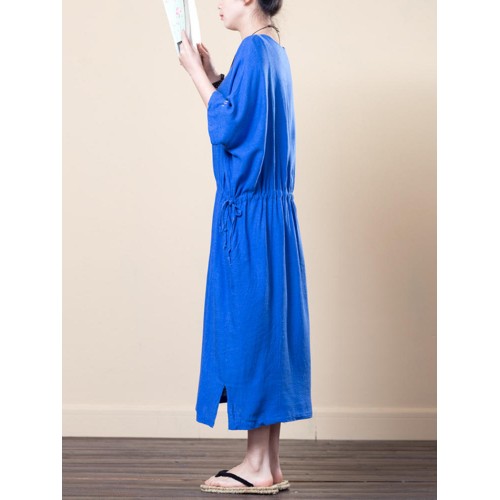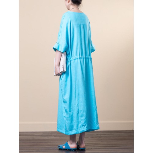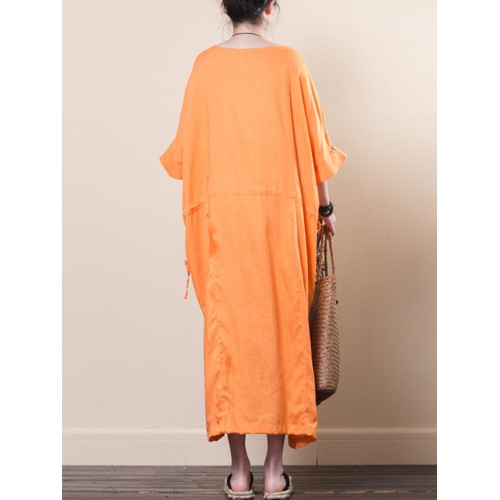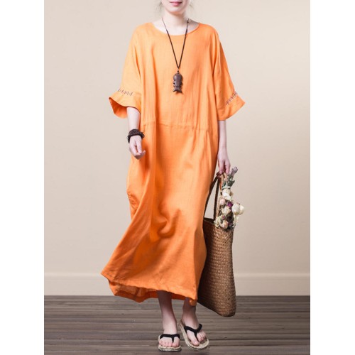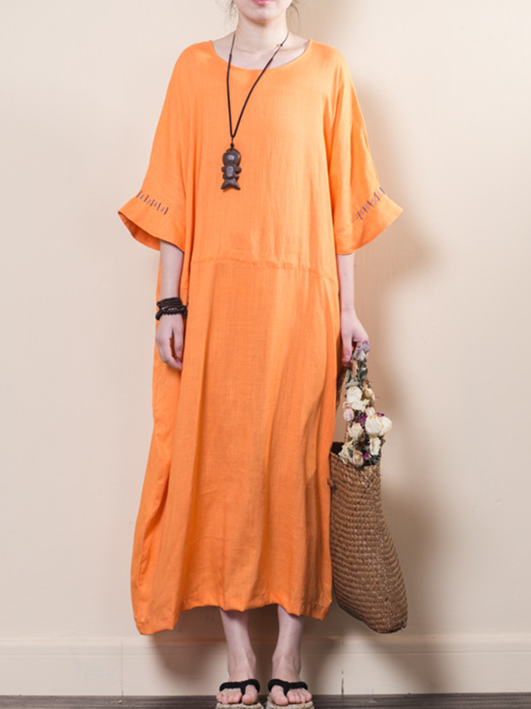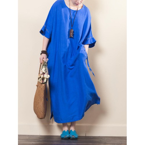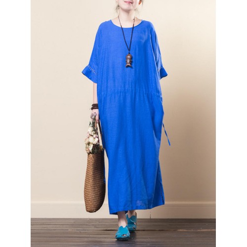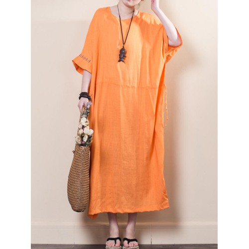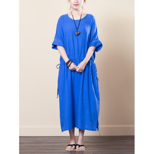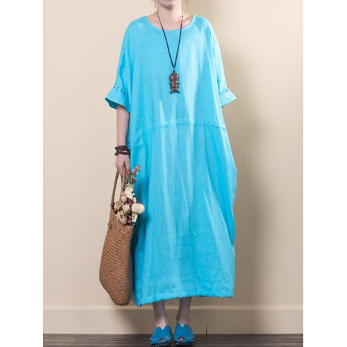 Vintage Women O-neck Loose Baggy Half Sleeve Dress