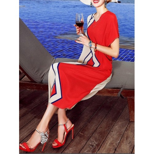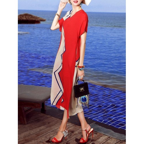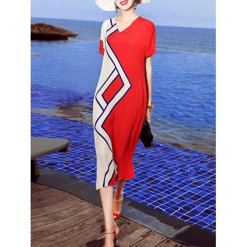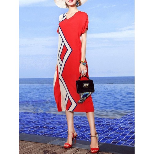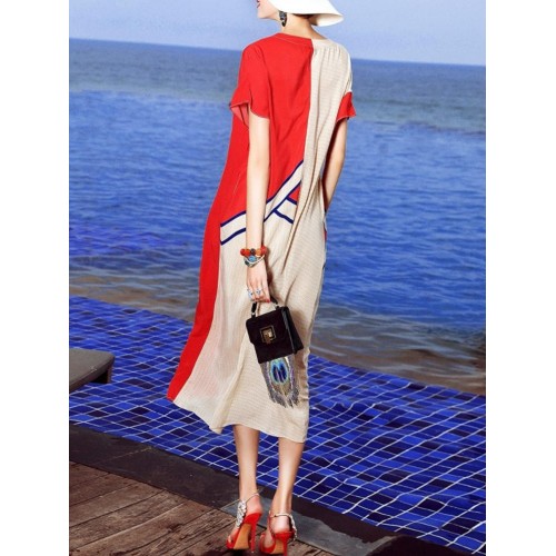Vintage Women Floral Print O-neck Loose Mid-long Elegant Dress