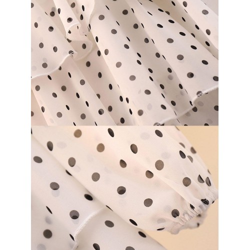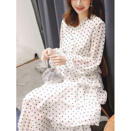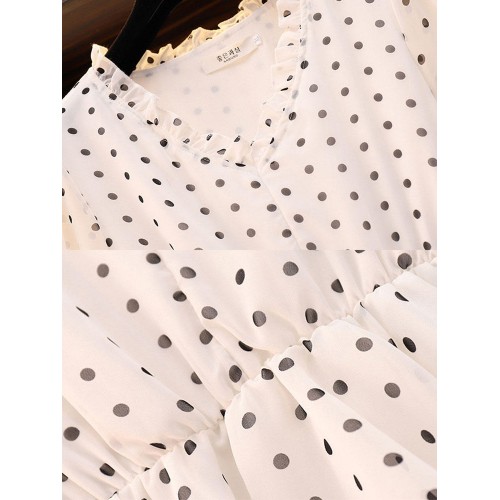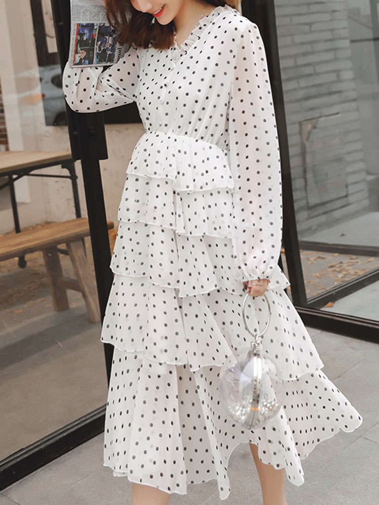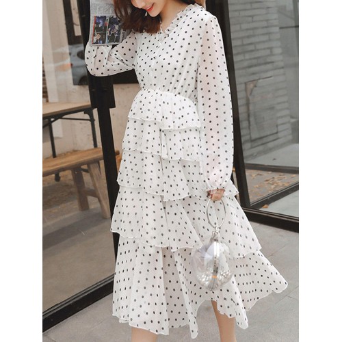 Women Bohemian Dot Printing Chiffon Dress V-Neck Multi-layer Dress