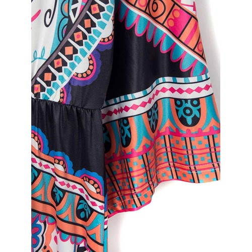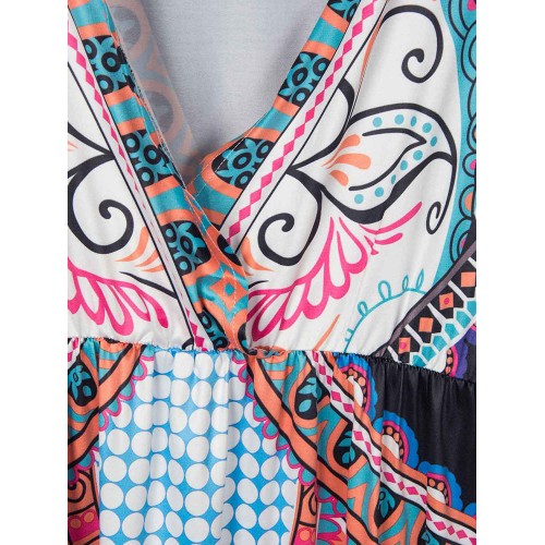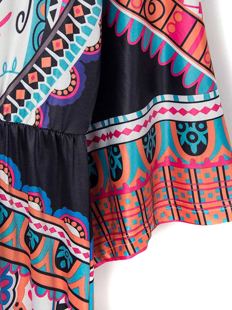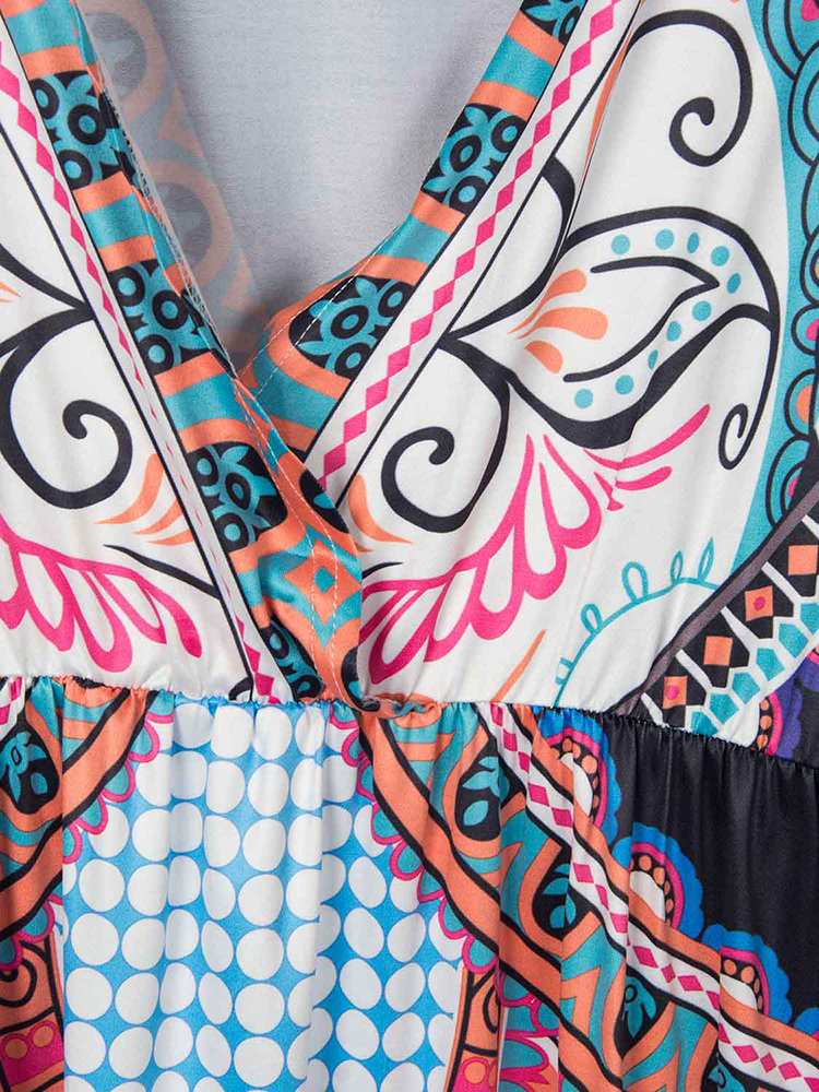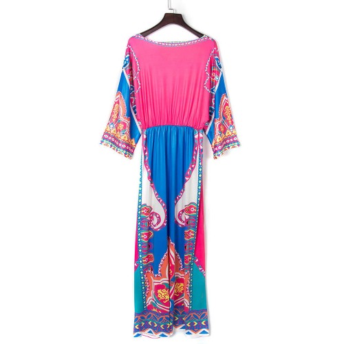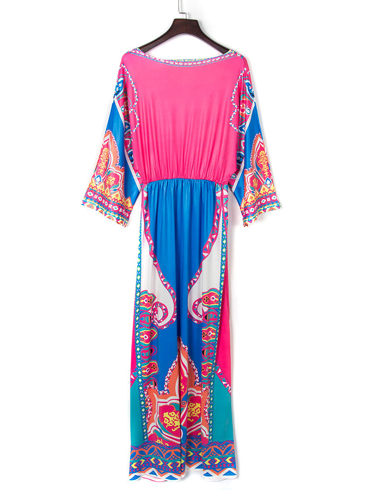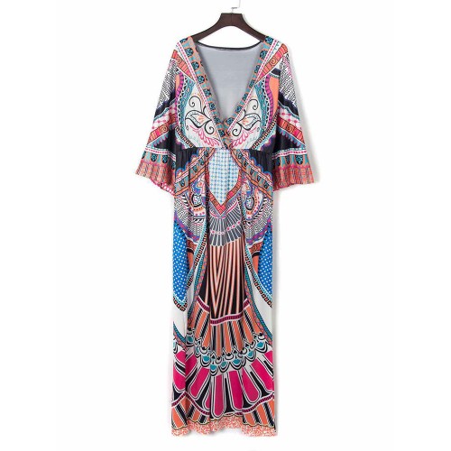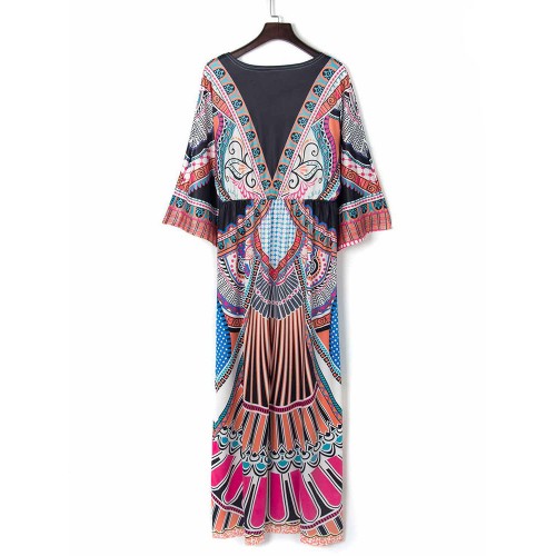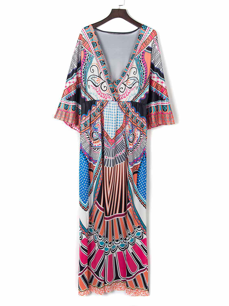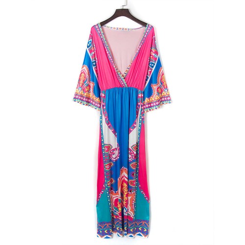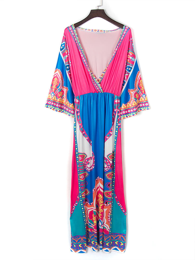 Bohemian Sexy V-Neck Half Sleeve Floral Printed Maxi Dresses For Women