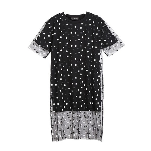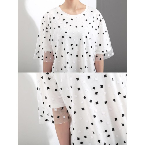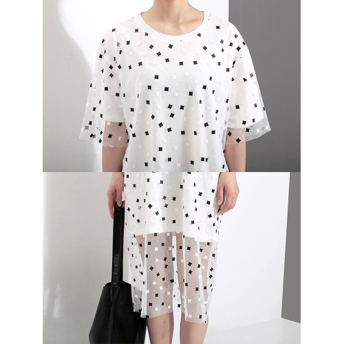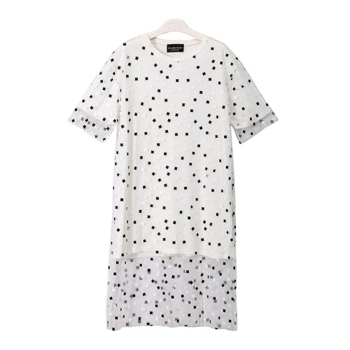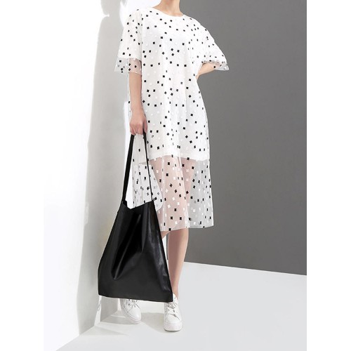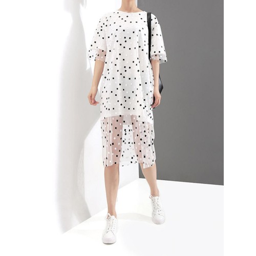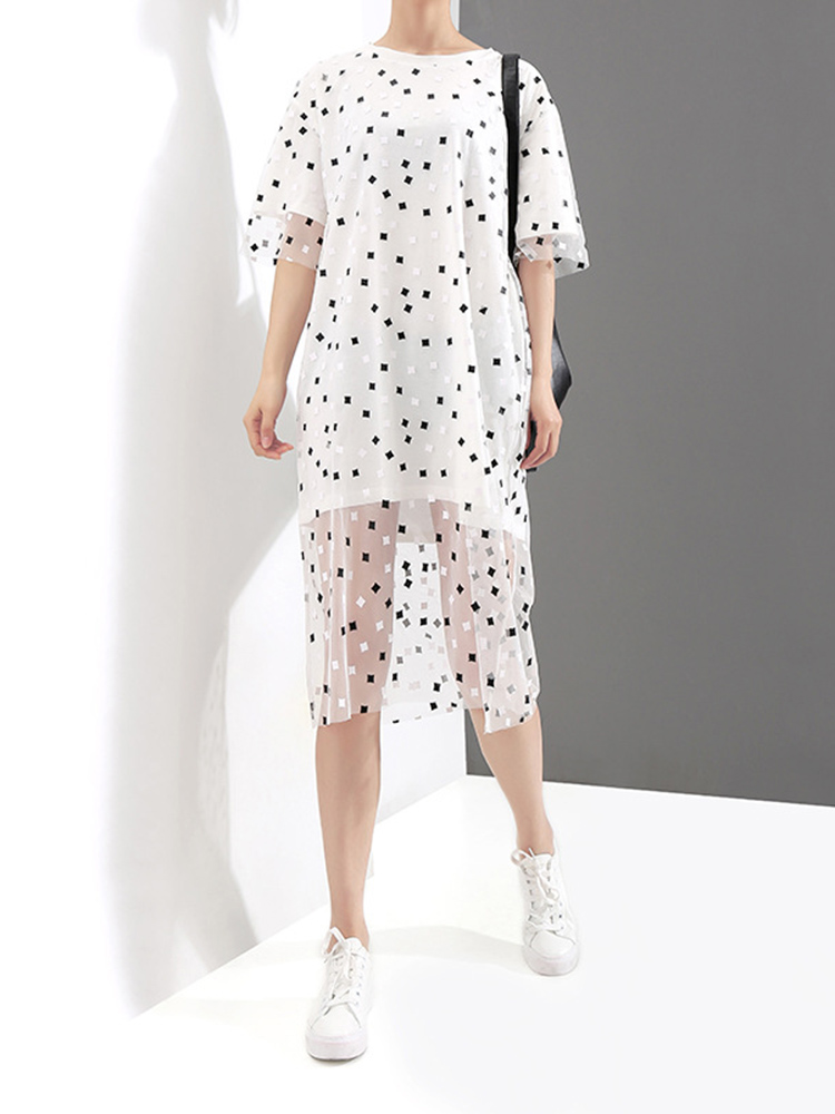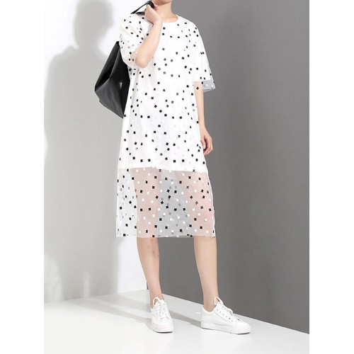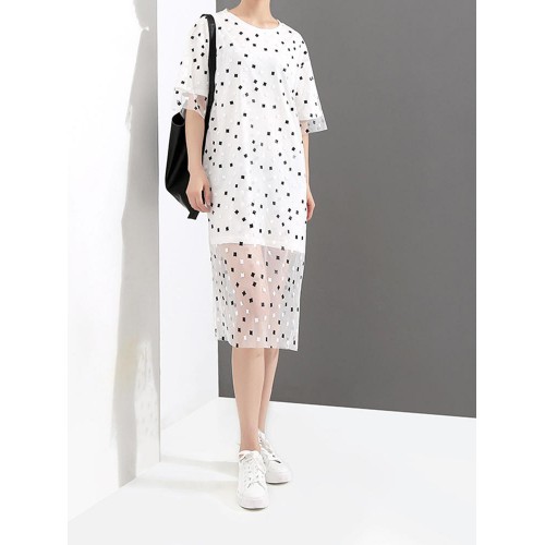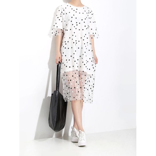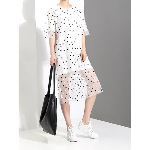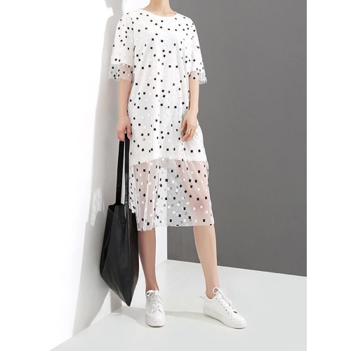 Casual Women Fake Two Pieces Polka Dot O-Neck Short Sleeve Dress