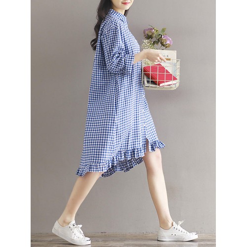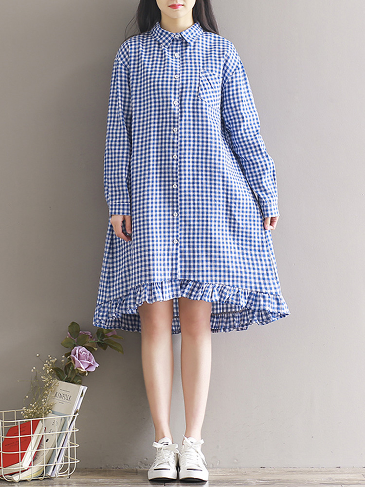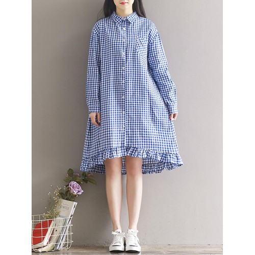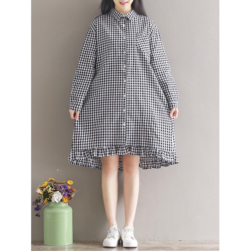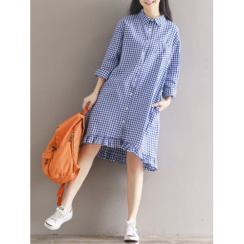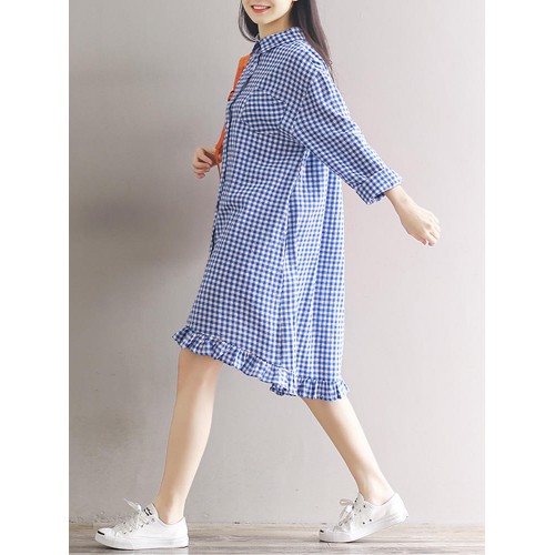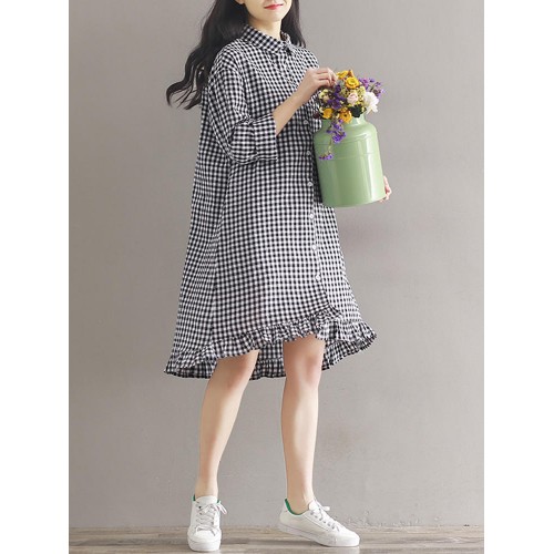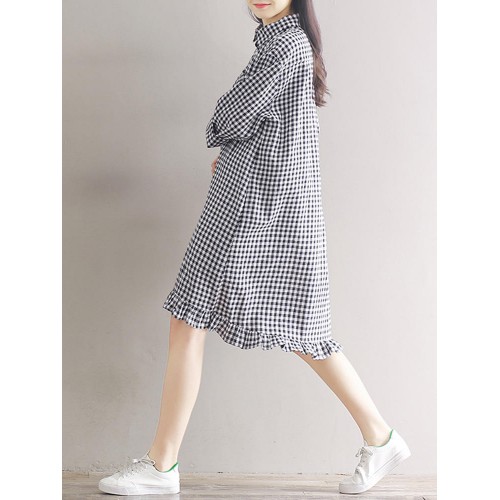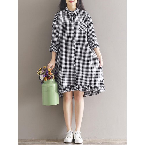 Women Casual Plaid Lapel Shirt Dress