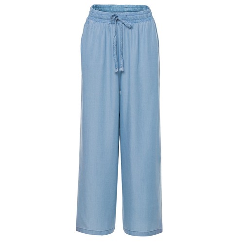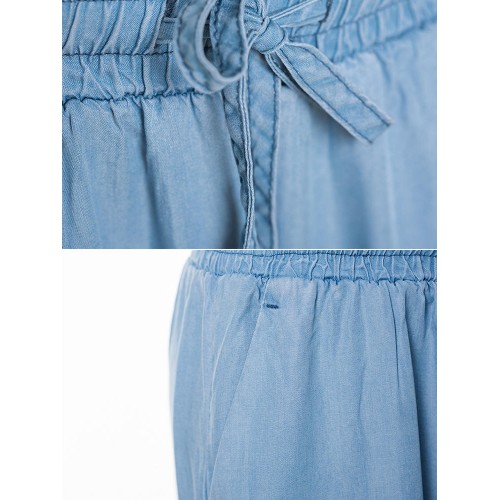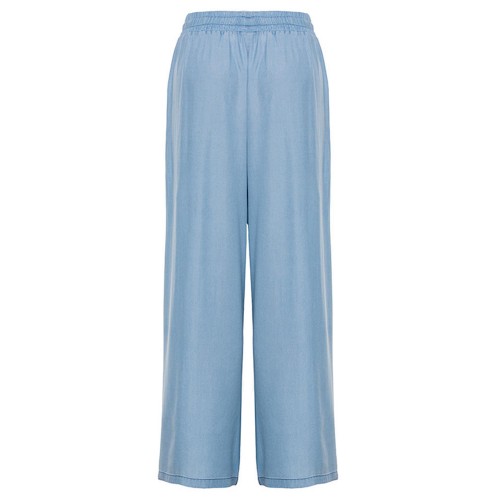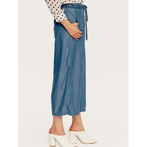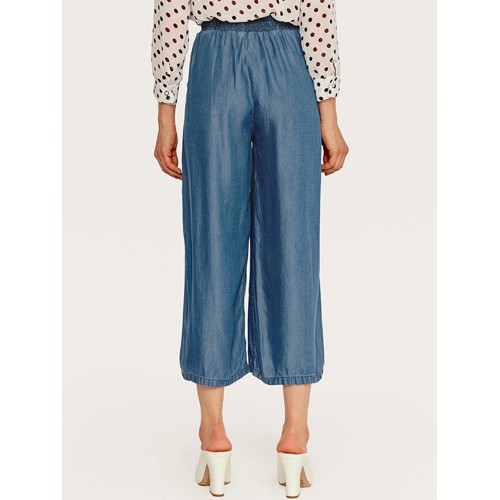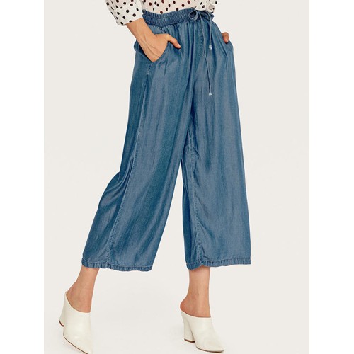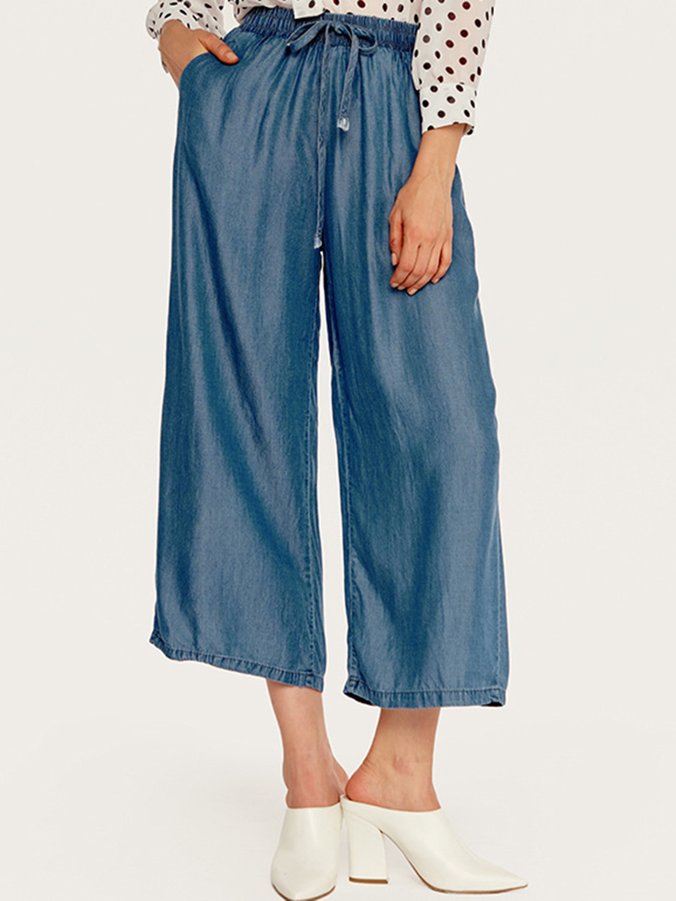 Women Elastic Wasit Pockets Wide Leg Jeans