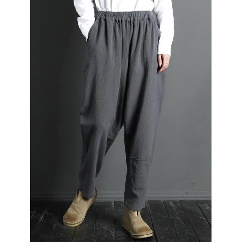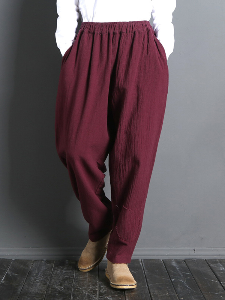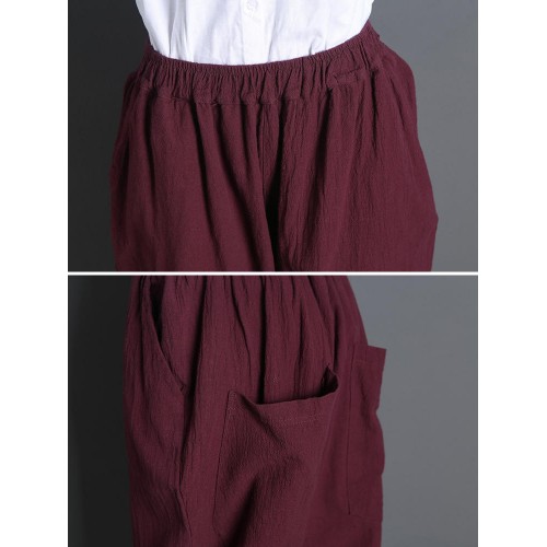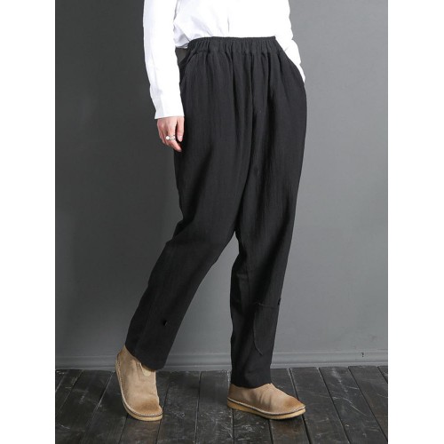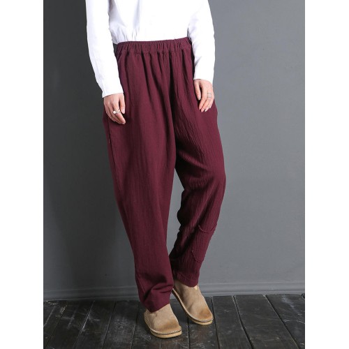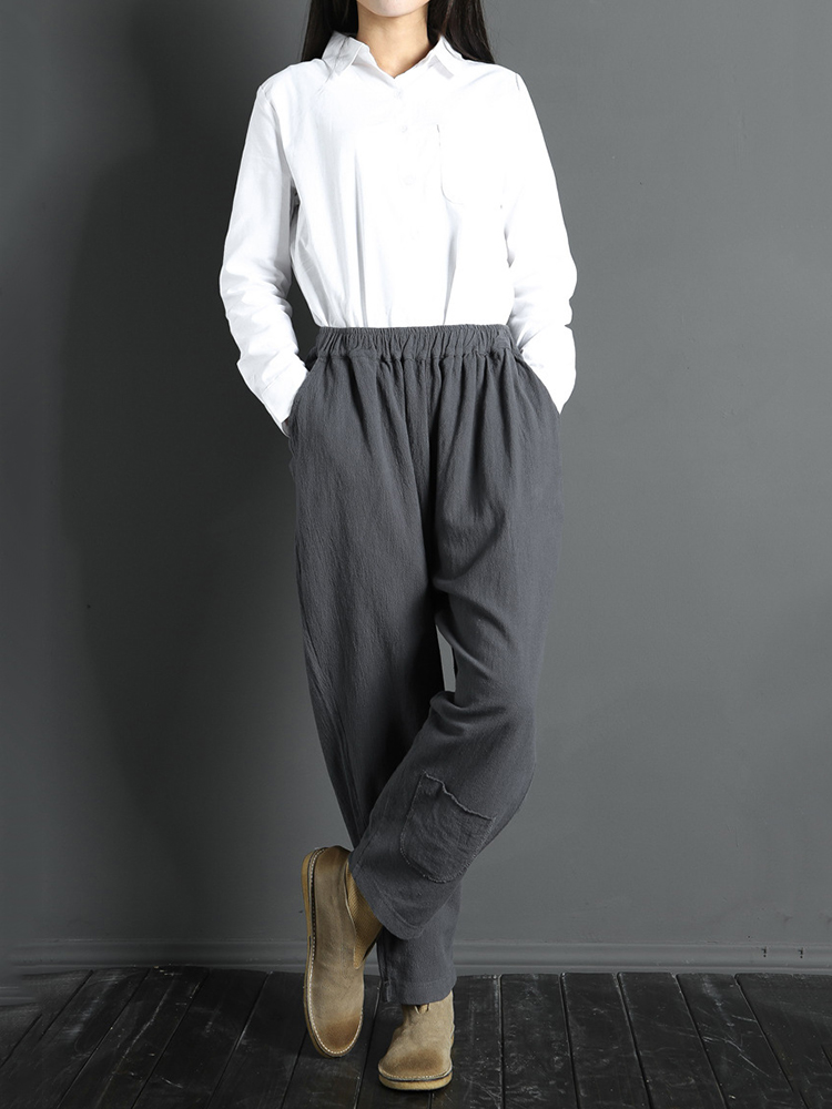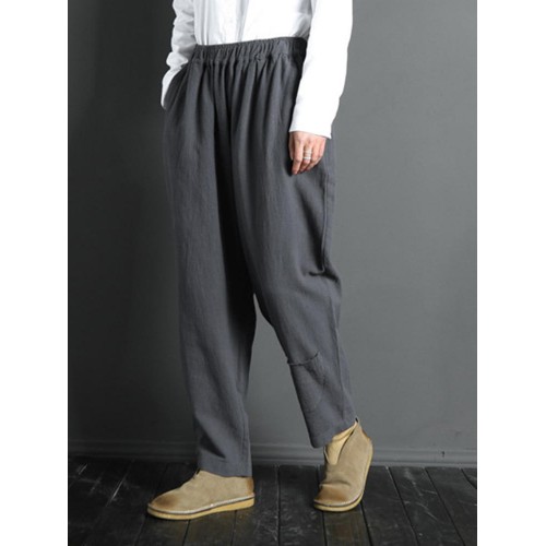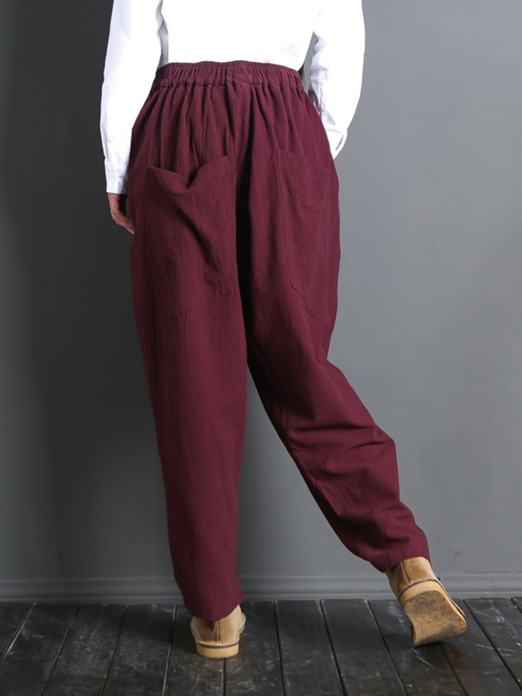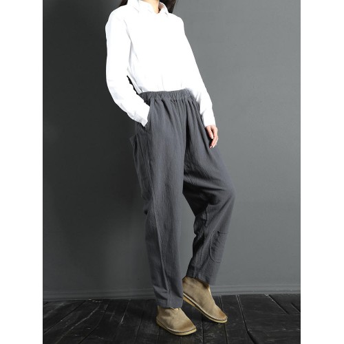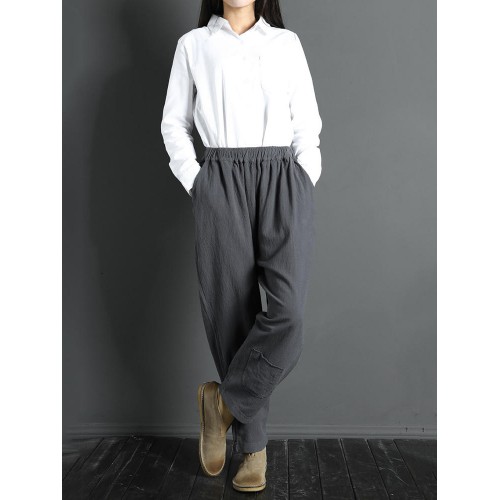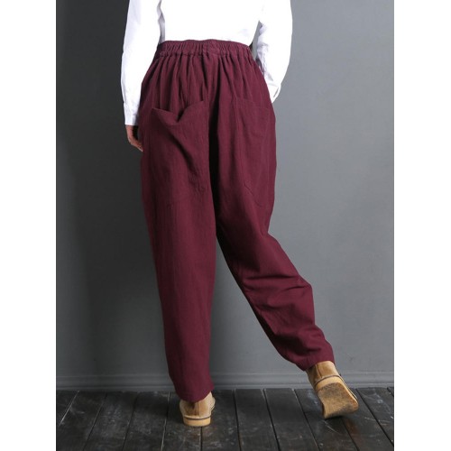 Women Casual Solid Color Elastic Waist Pants With Pocket