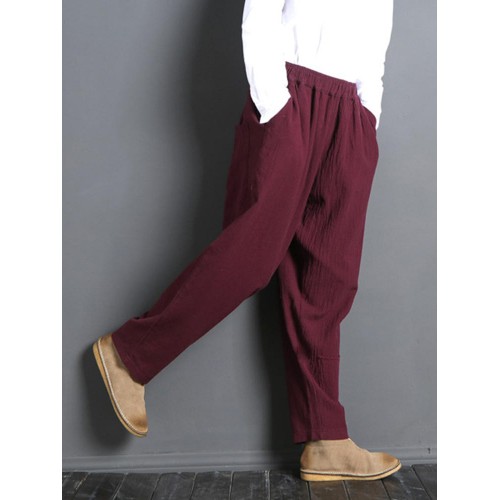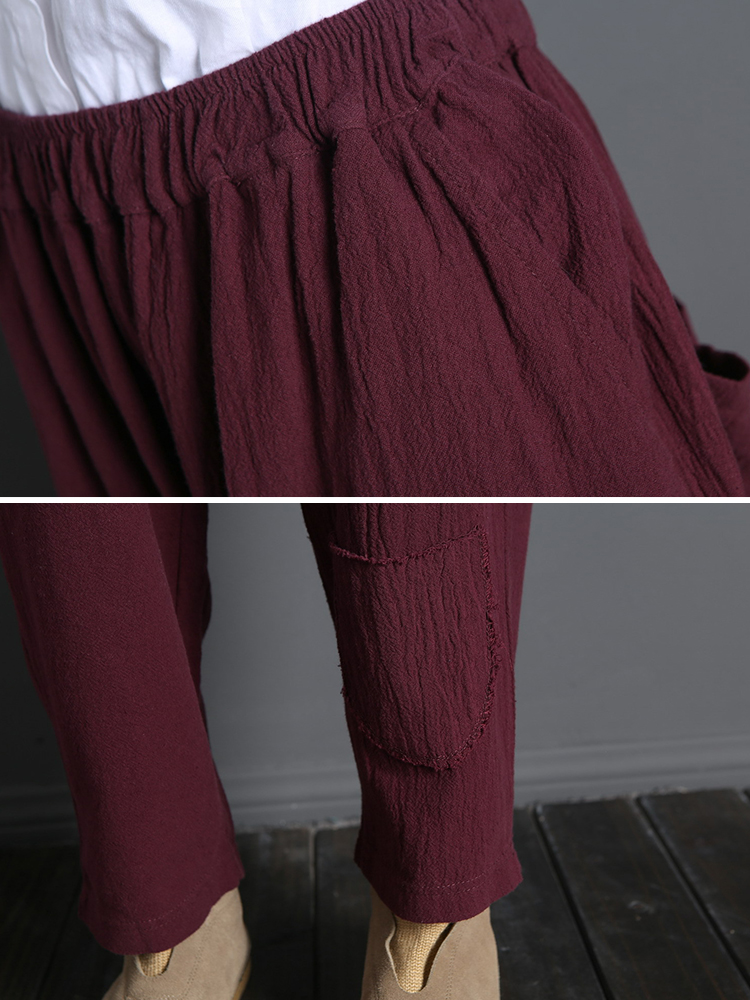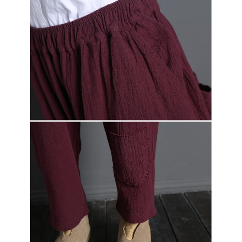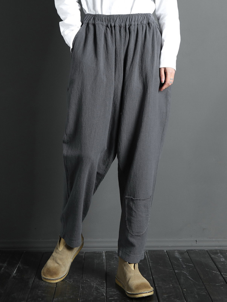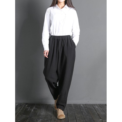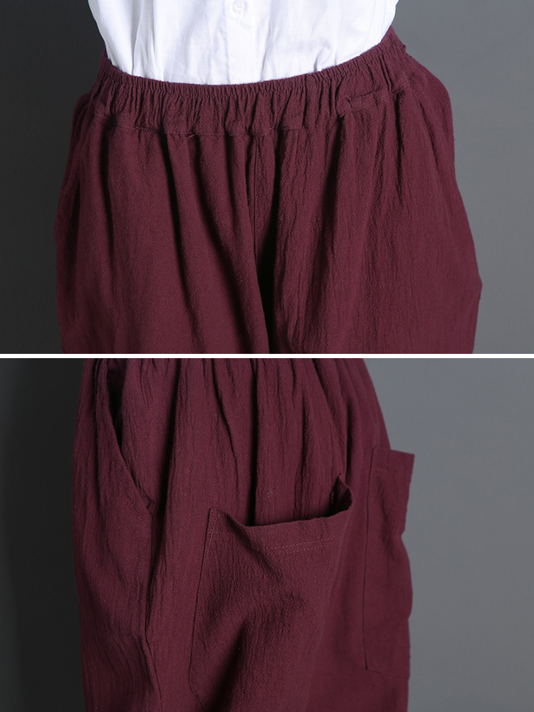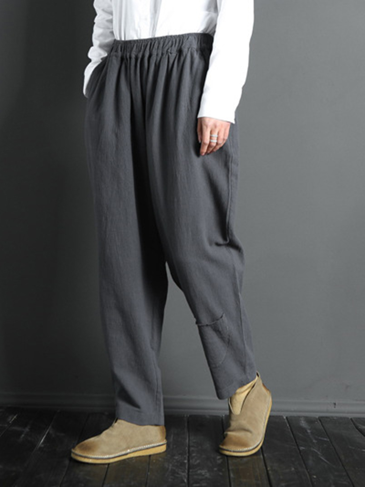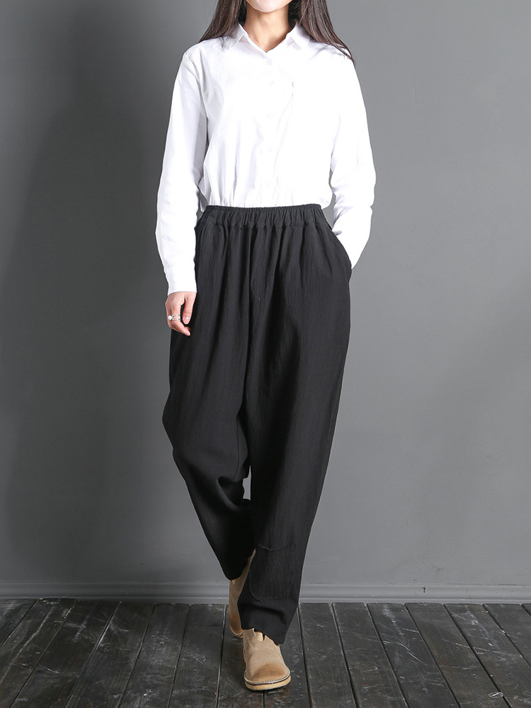 Women Casual Solid Color Elastic Waist Pants With Pocket