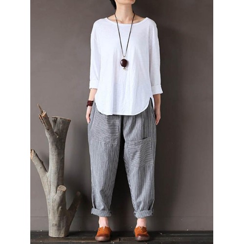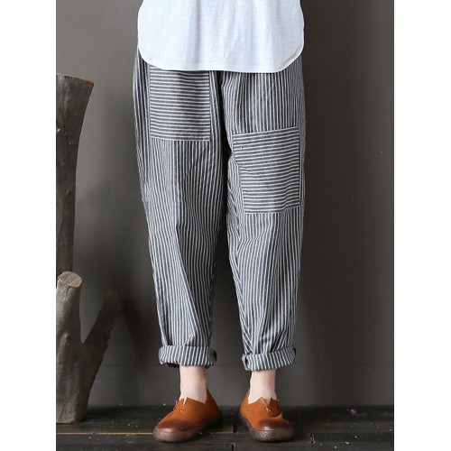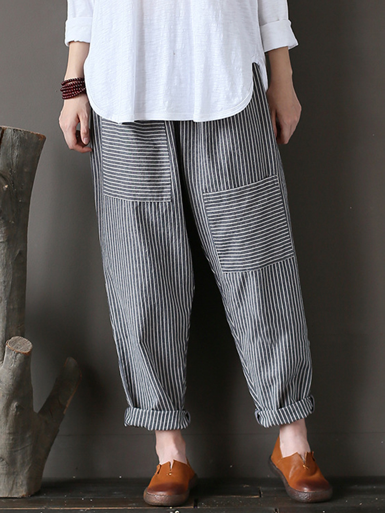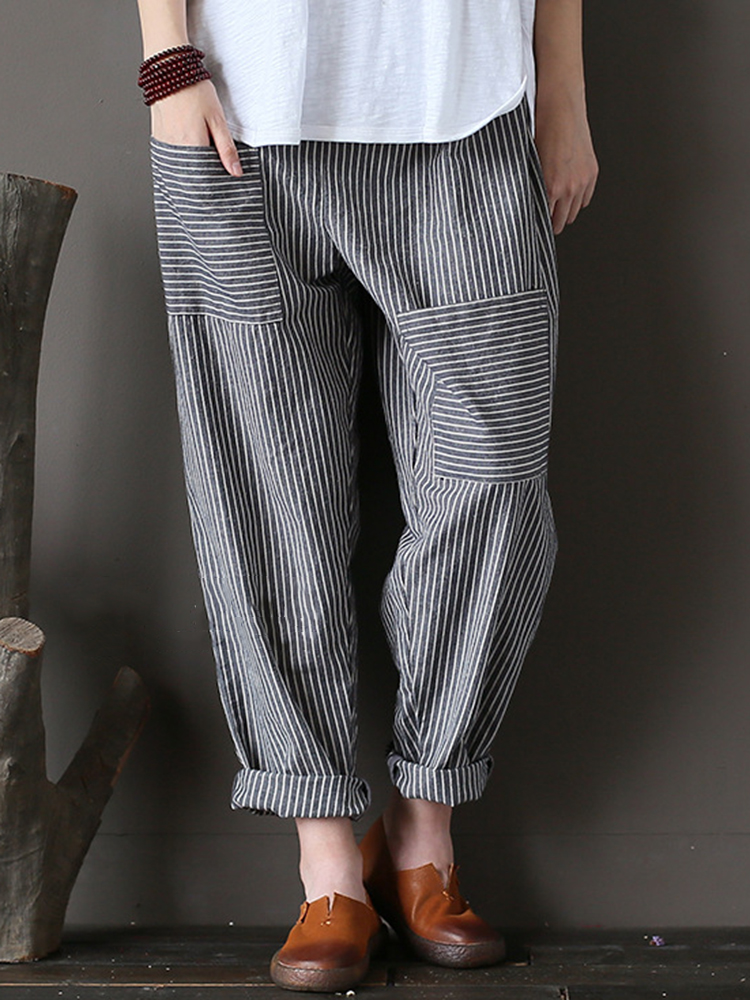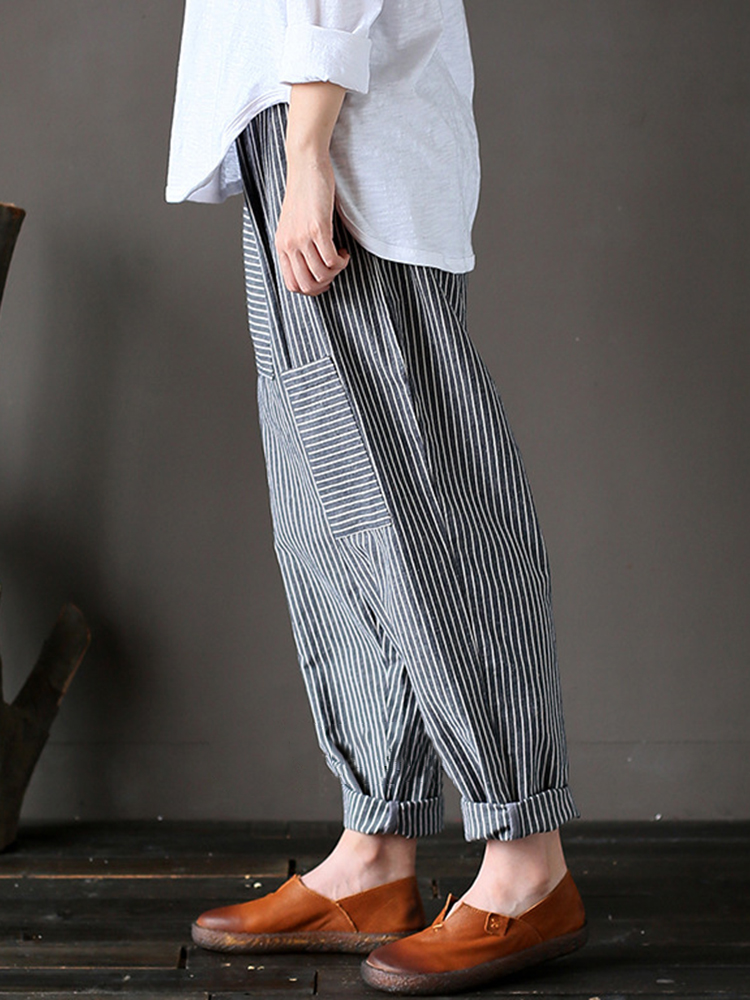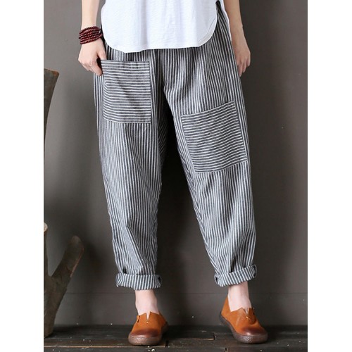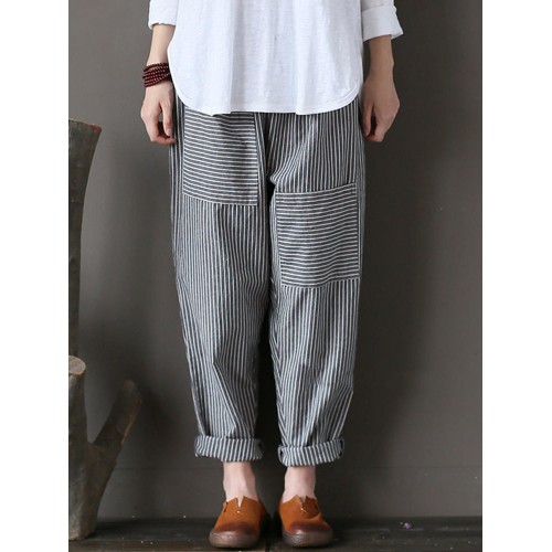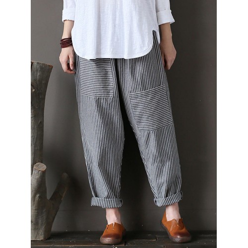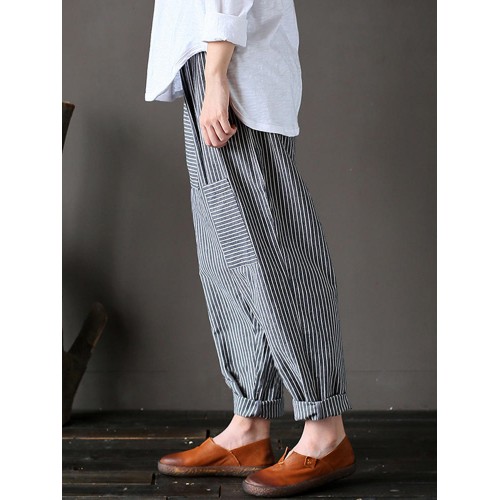 Women Stripe Elastic Waist Casual Loose Harem Pants