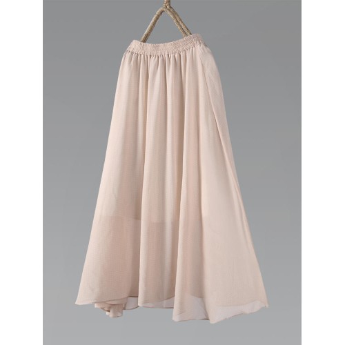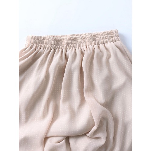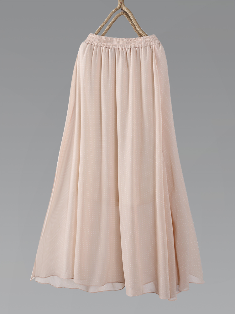 Women Polka Dot Print Elastic Waist Big Swing Hem Chiffon Maxi Skirts