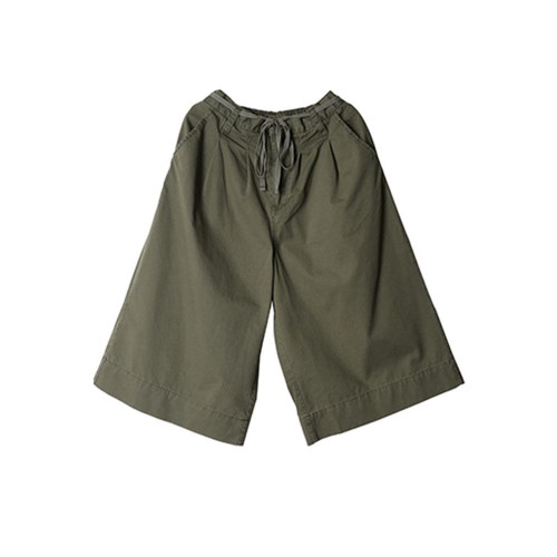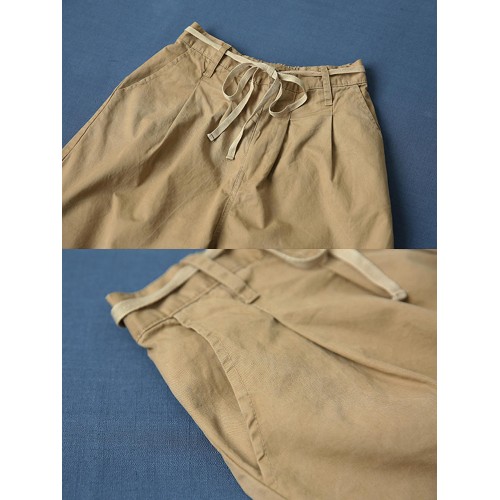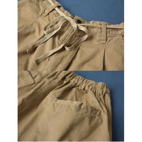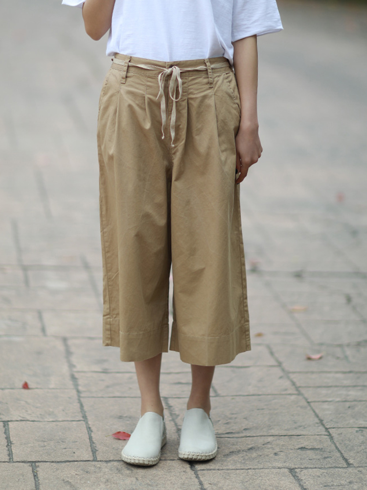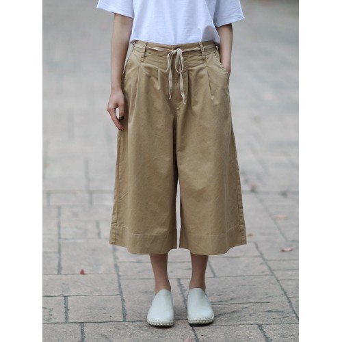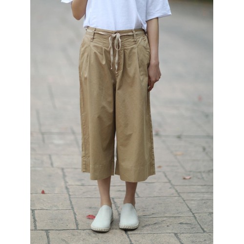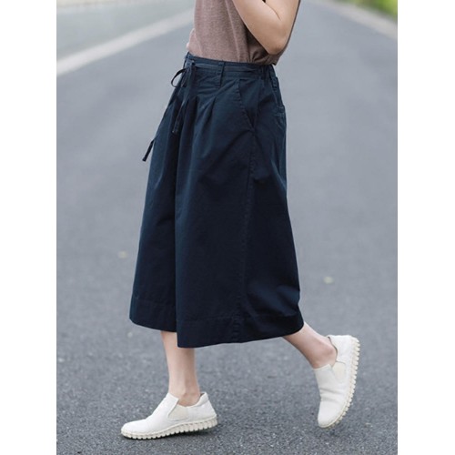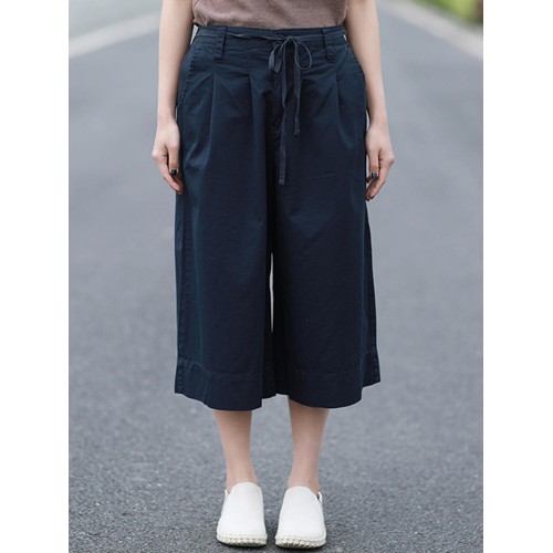 Women Casual Pure Color Cotton Wide Leg Trousers Pants