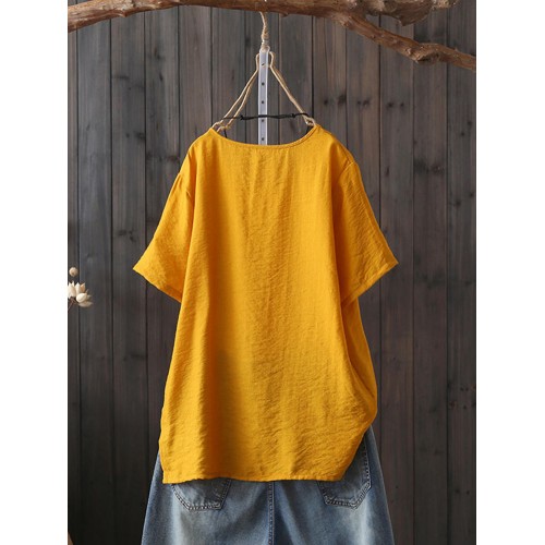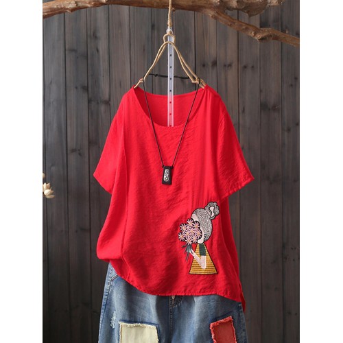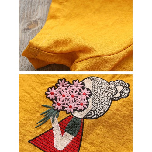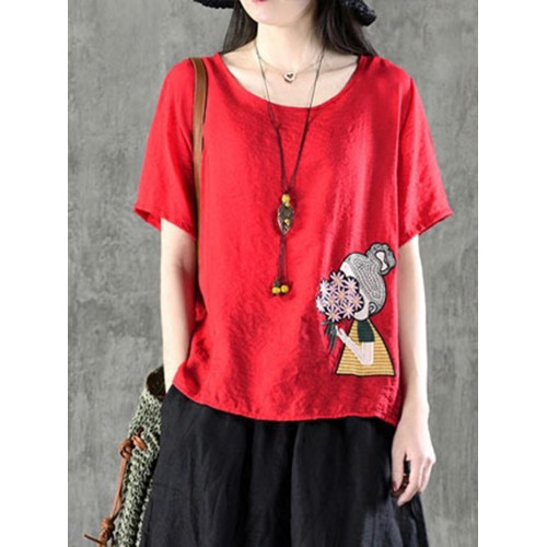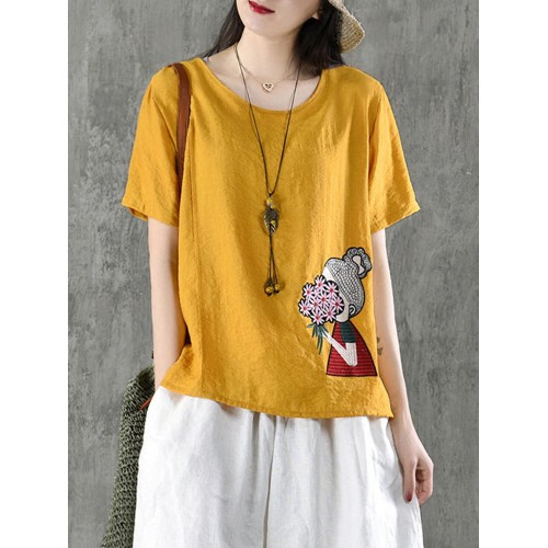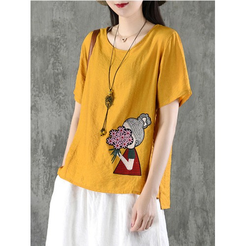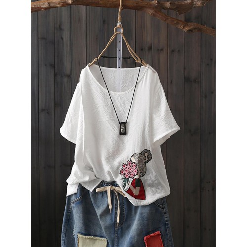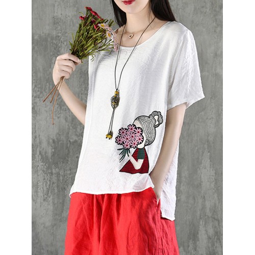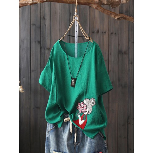 Women Cartoon Embroidery Cotton Short Sleeve T-Shirts