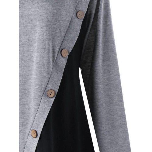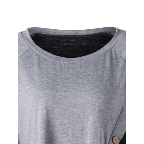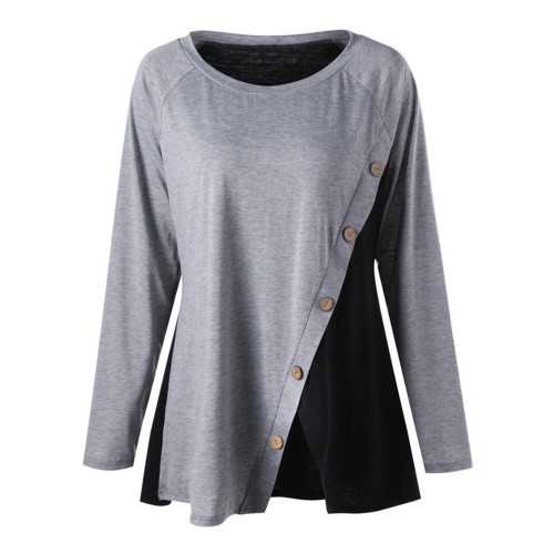 Women Casual Button O-neck Patchwork Long Sleeve T-shirts