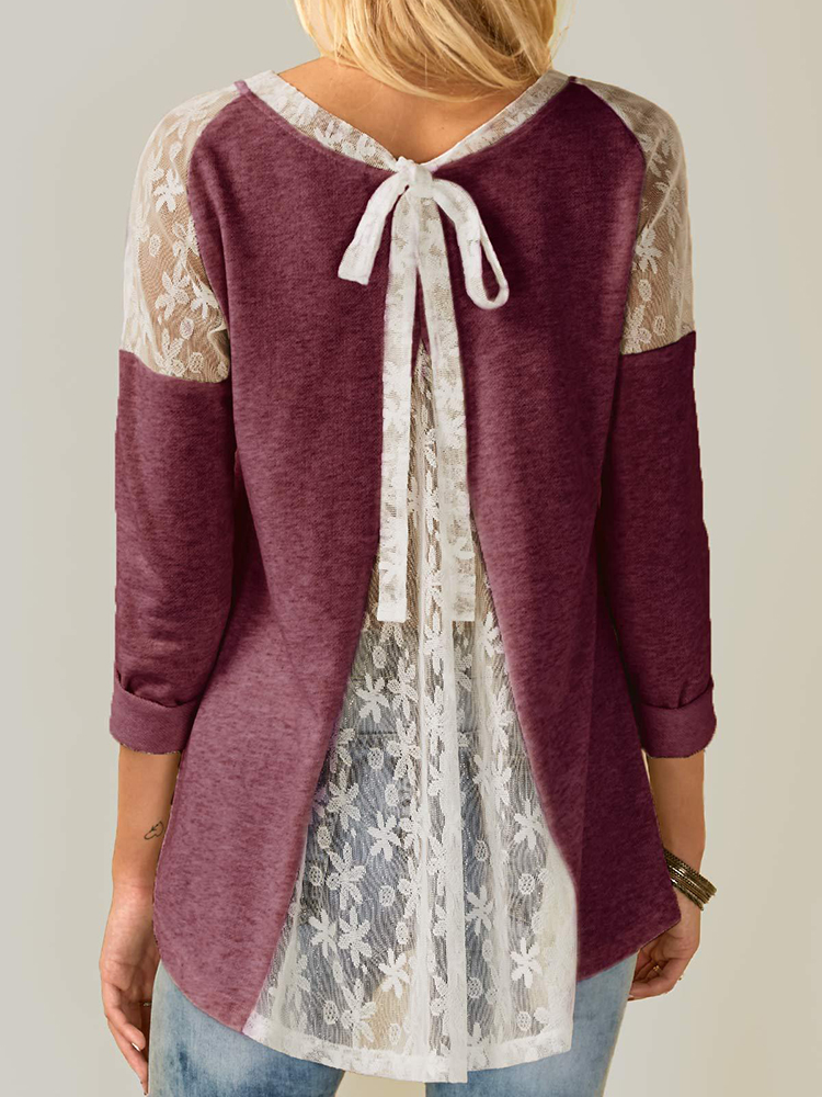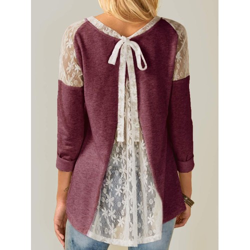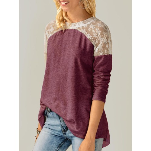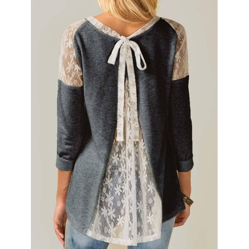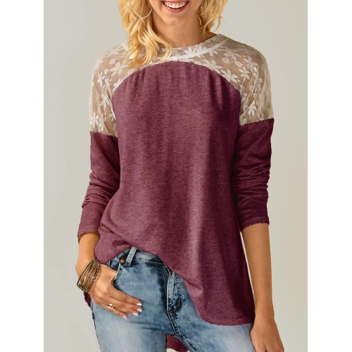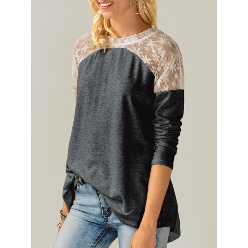 Women Casual Lace Patchwork Long Sleeve Blouse