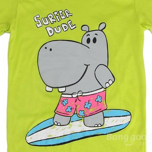 2015 New Lovely Hippo Baby Children Boy Pure Cotton Short Sleeve T-shirt Top