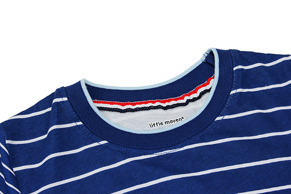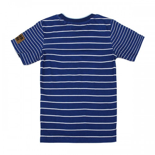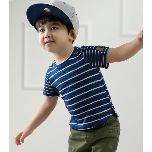 2015 New Little Maven Blue White Stripe Baby Children Boy Cotton Short Sleeve T-shirt