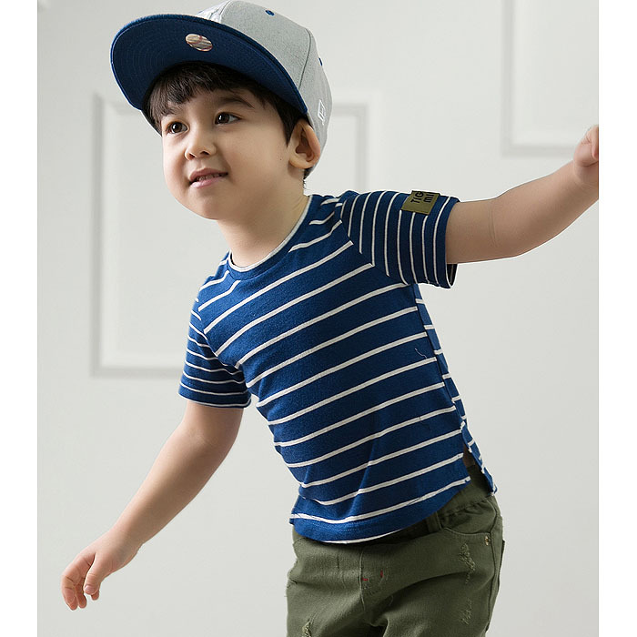 Package Includes : 1 x Children Boy Cotton Blue White Stripe T-shirt Details Pictures :