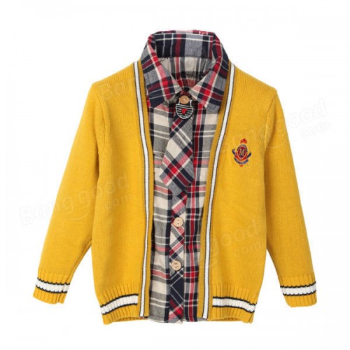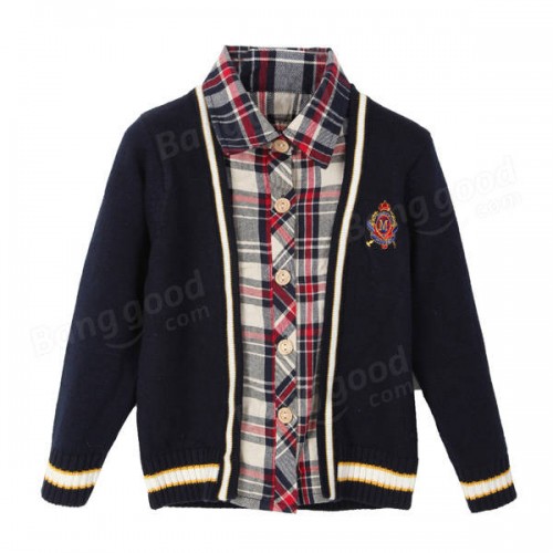 Baby Children Boys Wool Bow Thick Tie Plaid Sweater