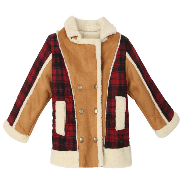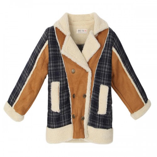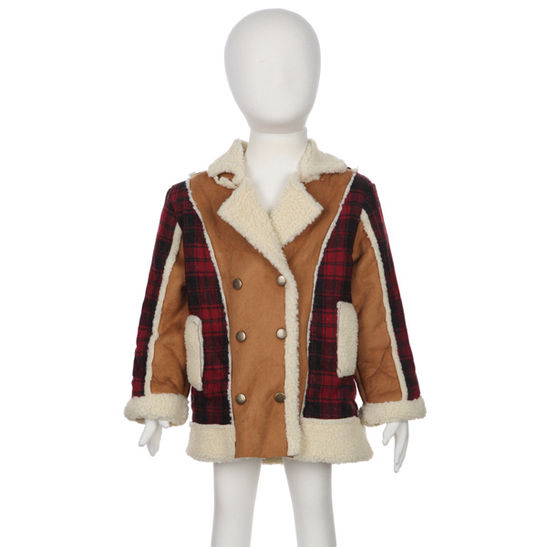 Description : Baby Children Boys Fur Leather Plaid Jacket Double-Breasted Coat Specification : Material: Wool,Cotton