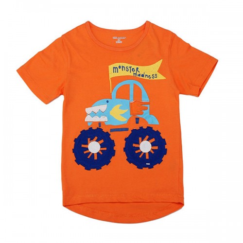 2015 New Little Maven Orange Lovely Car Boy Cotton Short Sleeve T-shirt Top