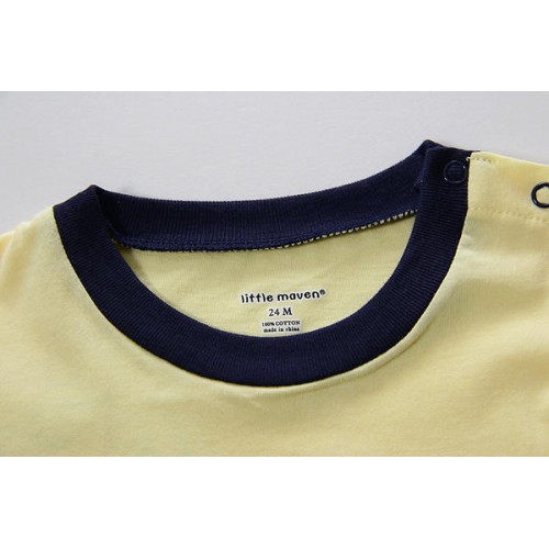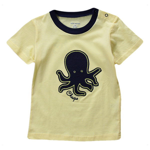2015 New Lovely Octopus Yellow Baby Children Boy Pure Cotton Short Sleeve + Shorts Suit