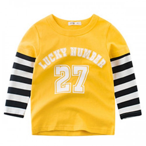 Boys Kids Sport Lucky Number Print Striped Patchwork T-Shirts