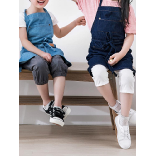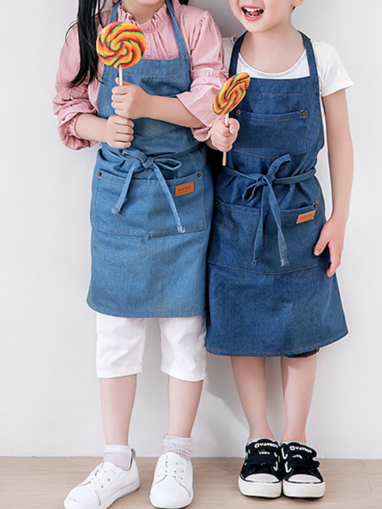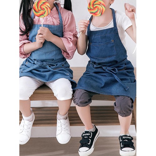 Children Gardening Cooking Cotton Linen Aprons Denim Dress with Pockets