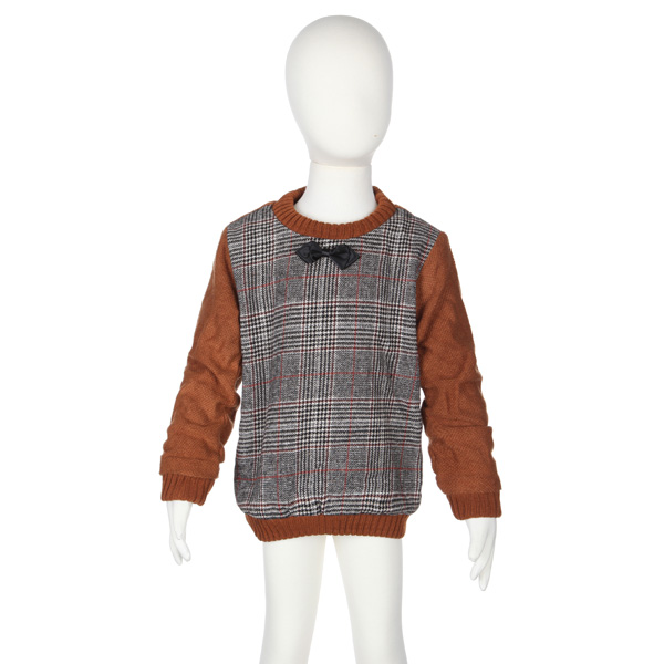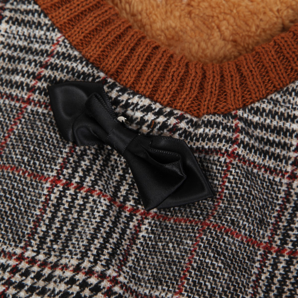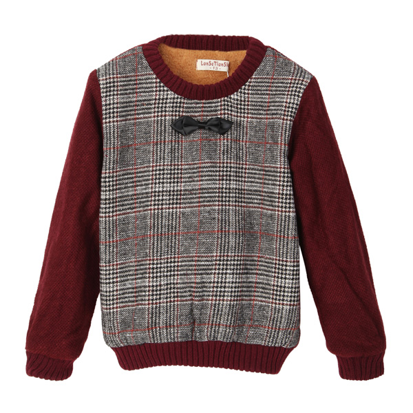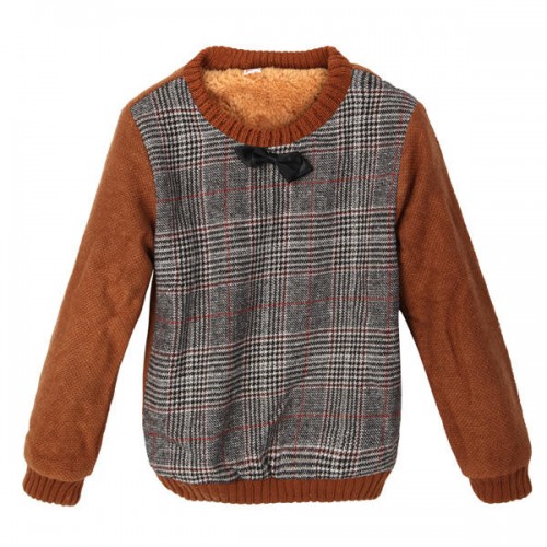 Baby Children Boys Thick Tie Lattice Plaid Fur Sweater