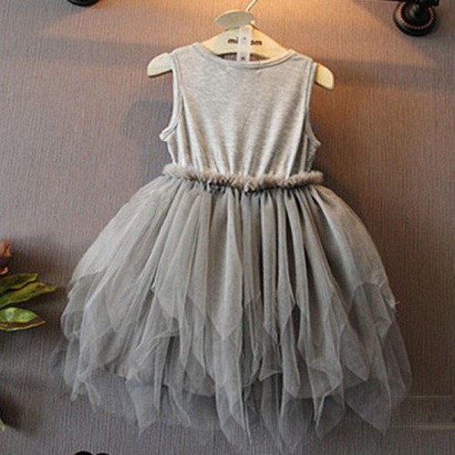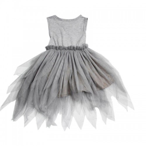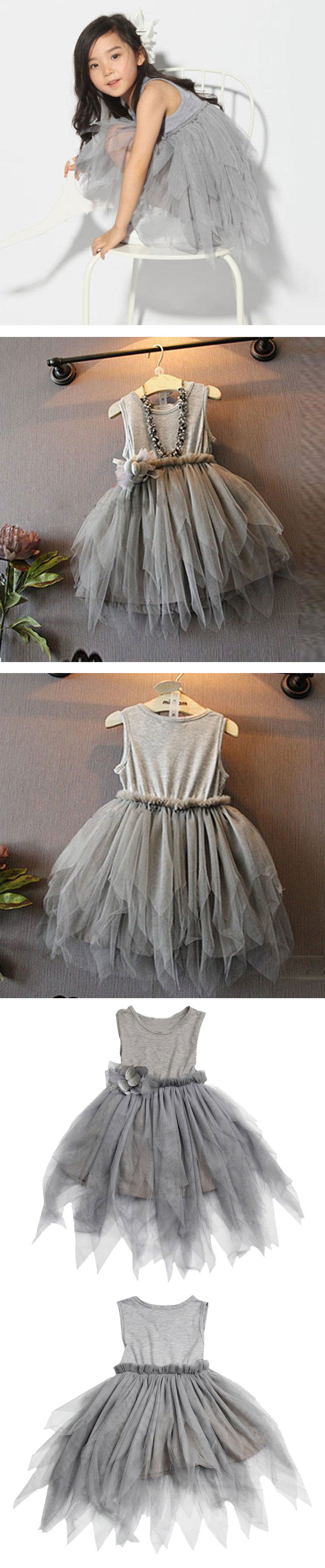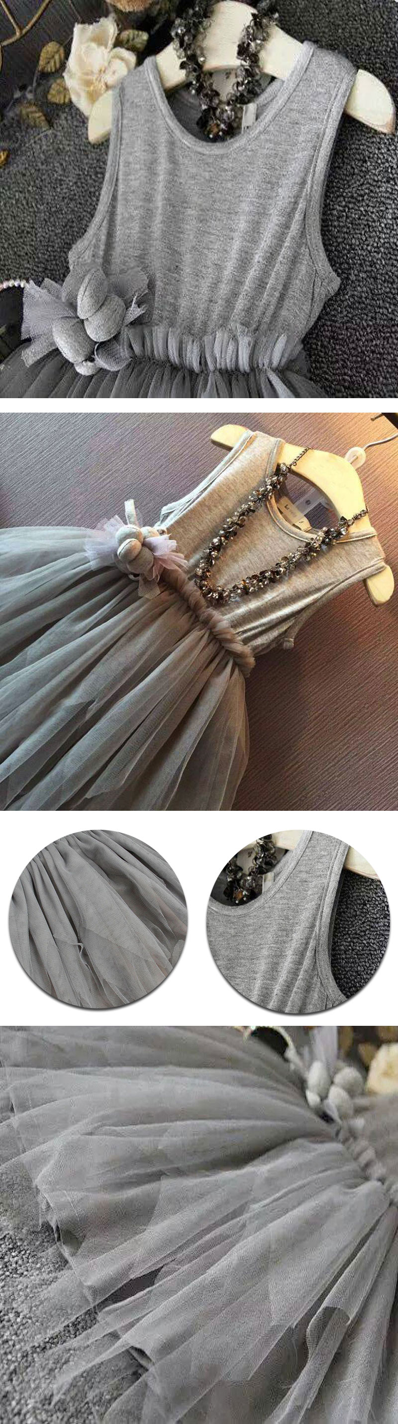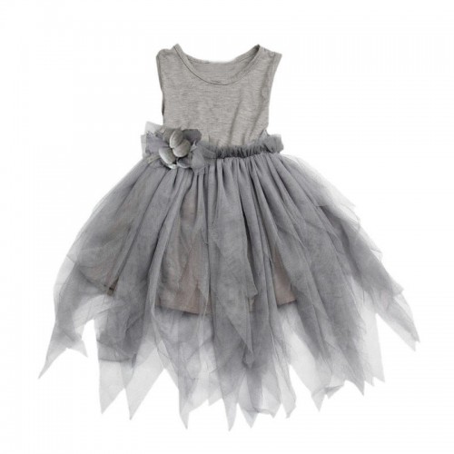 Gray Kids Girl Princess Sleeveless Dress Toddler Vintage Wedding Party Pageant Flower Bow Tulle Tutu