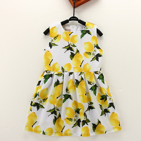Kid Girls Lemon Printed Sleeveless Knee-Length Dress