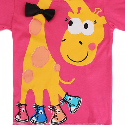 2015 New Summer Baby Girl Children Giraffe Rose Cotton Short Sleeve T-shirt