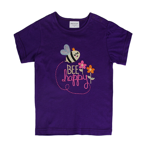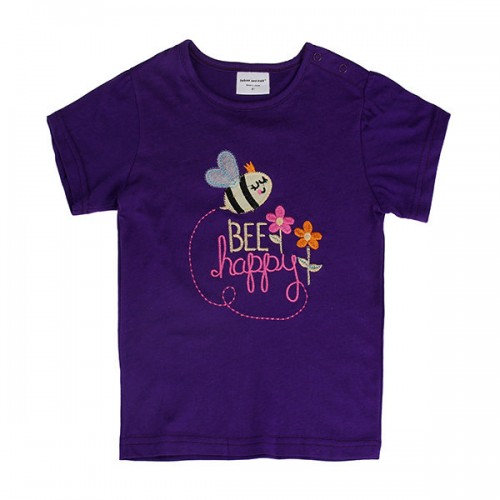 Summer Baby Girl Children Bee Purple Cotton Short Sleeve T-shirt