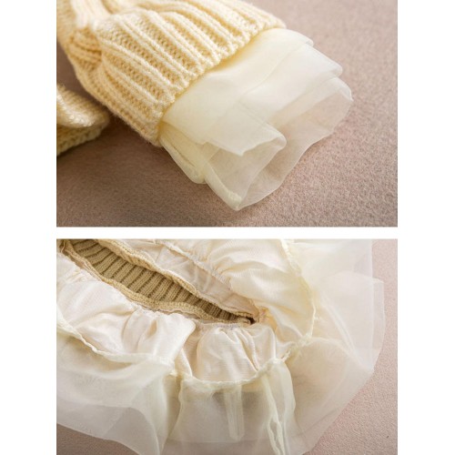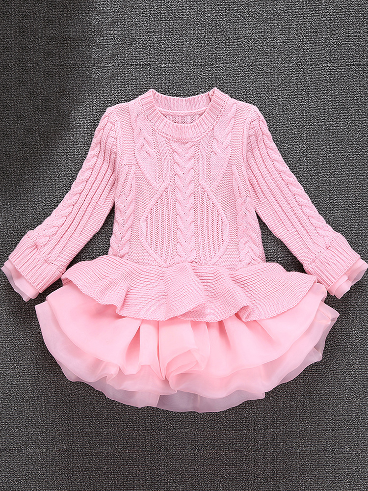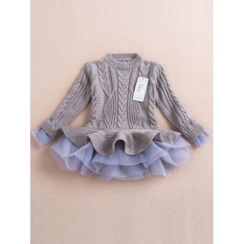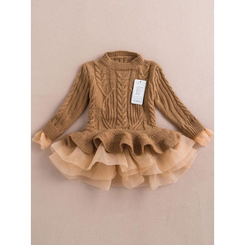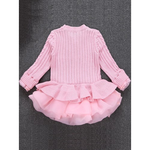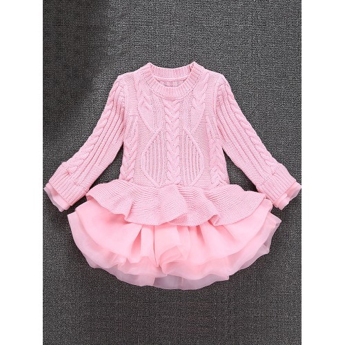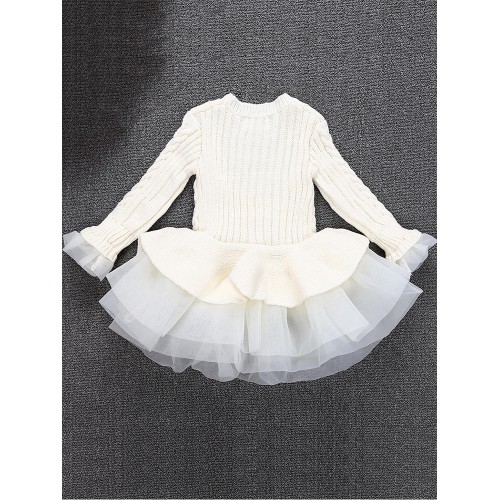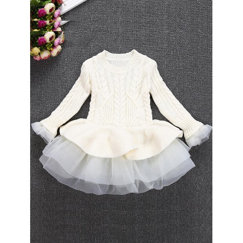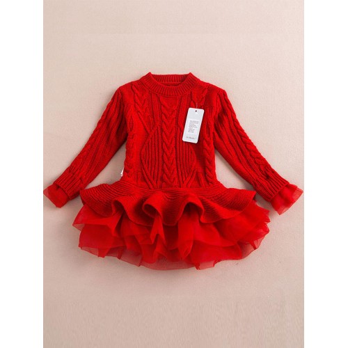 Thick Warm Winter Christmas Wedding Party Knitted Patchwork Lace Girls Children Dress