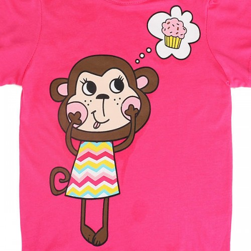 1 x Girl Monkey Rose Red Cotton T-shirt