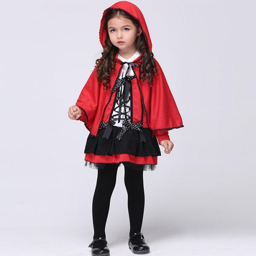 Cute Little Girls Little Red Devil Cosplay Costume Halloween Little Red Riding Hood Costume