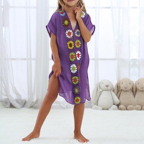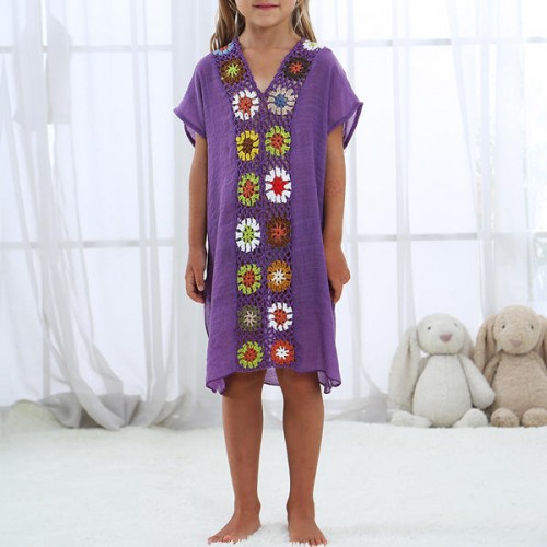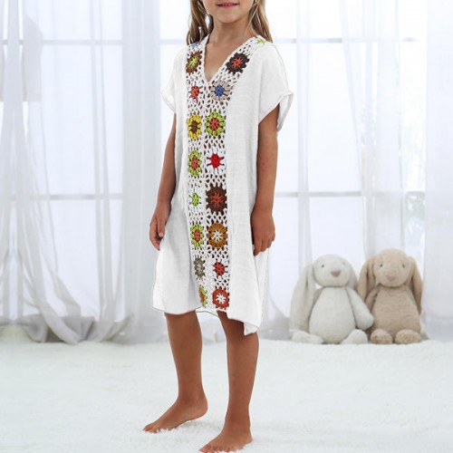 Girls Clothing Bohemian Floral Crochet Stitching Split Kaftan Dress