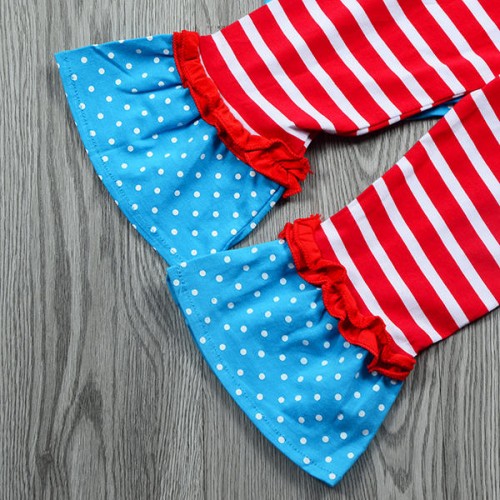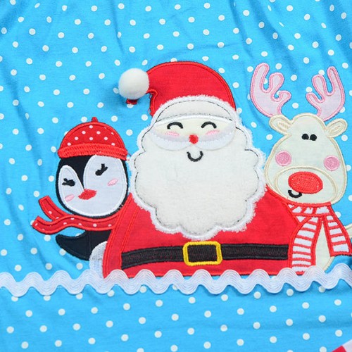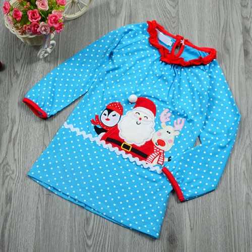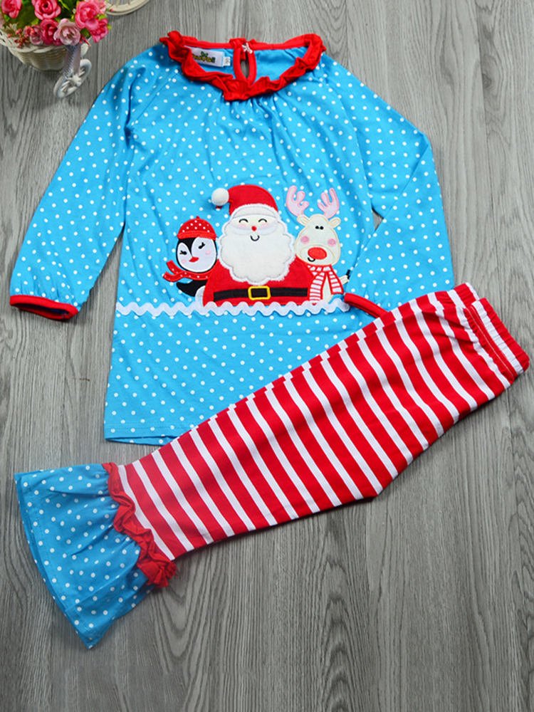 Christmas Kid Girls Santa Elk Pattern Long Sleeve Striped Clothing Suit