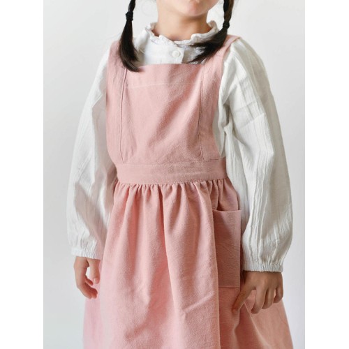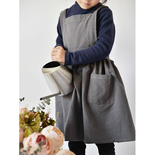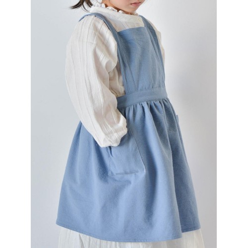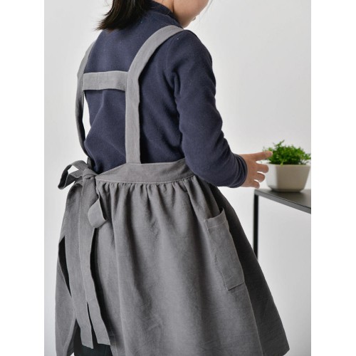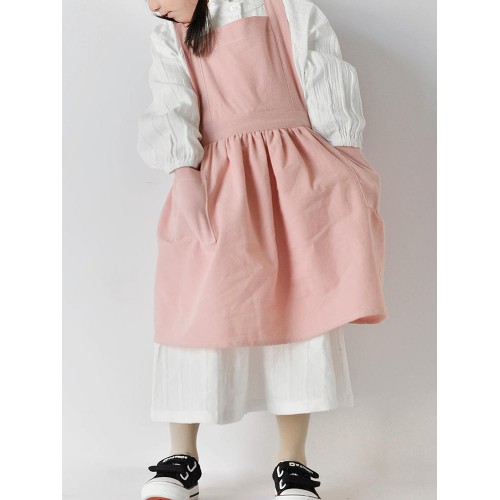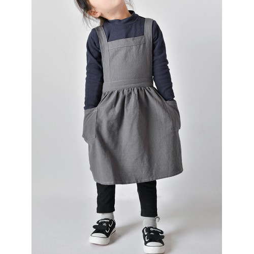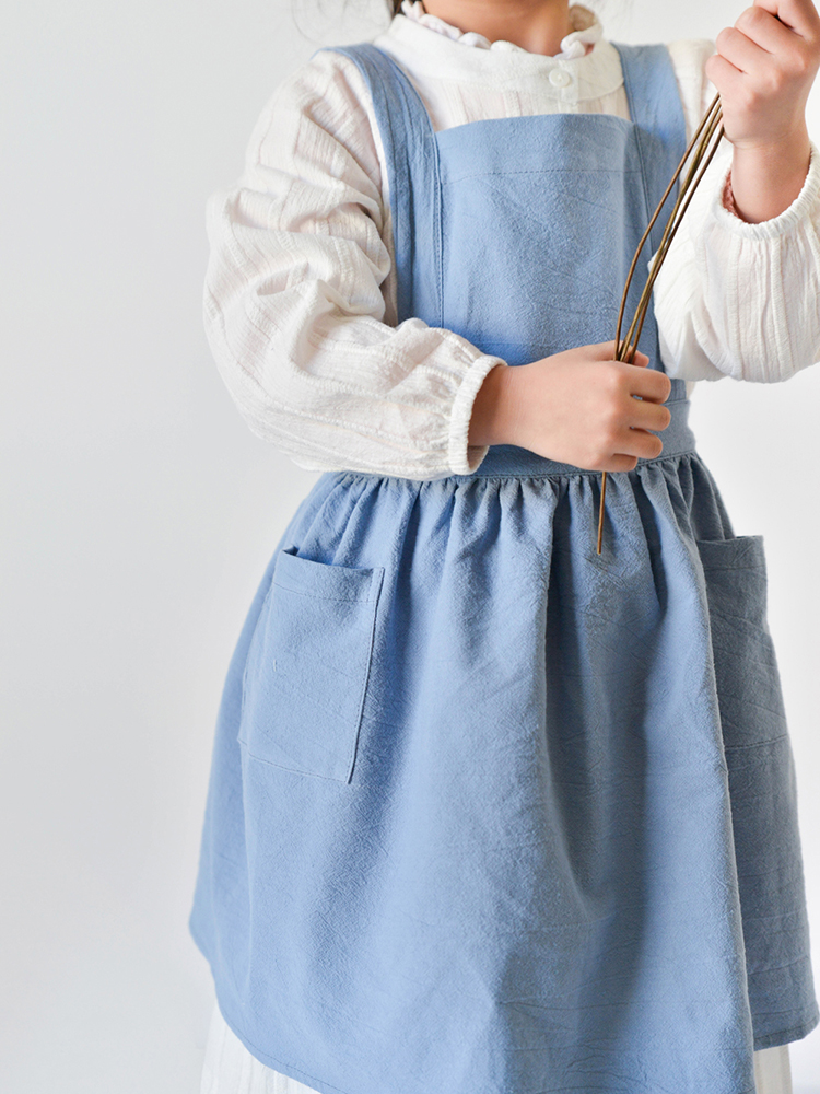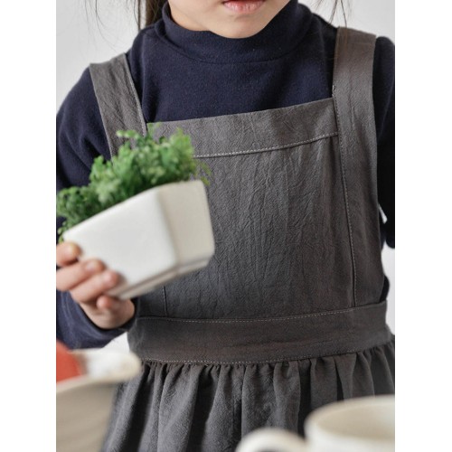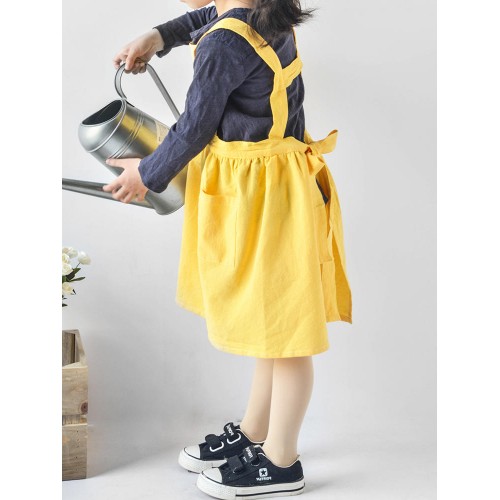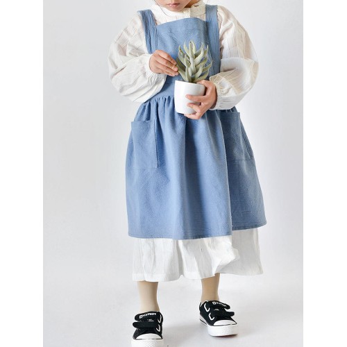 Children Girls Japanese Style Gardening Cooking Cotton Linen Aprons Dress with Pockets